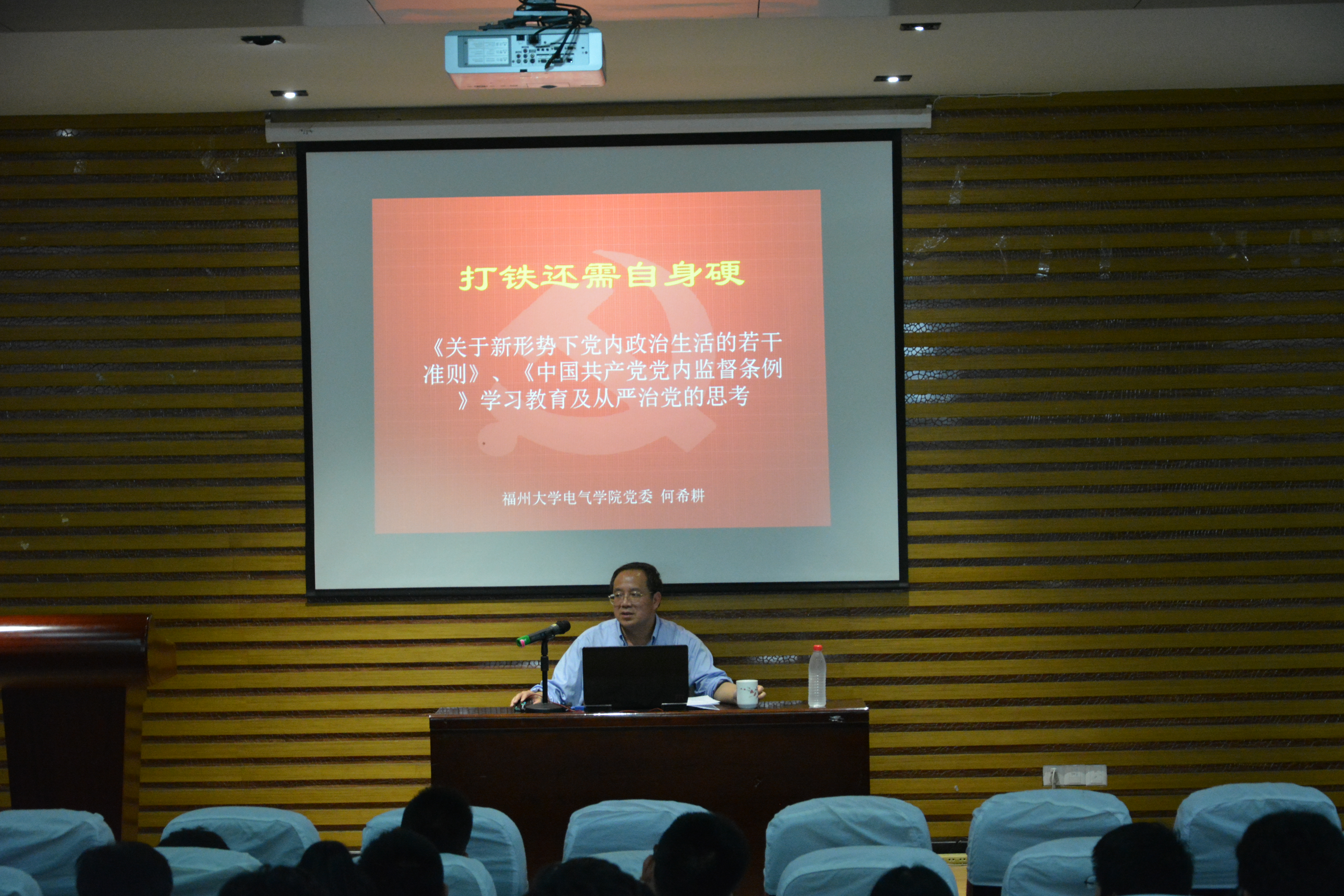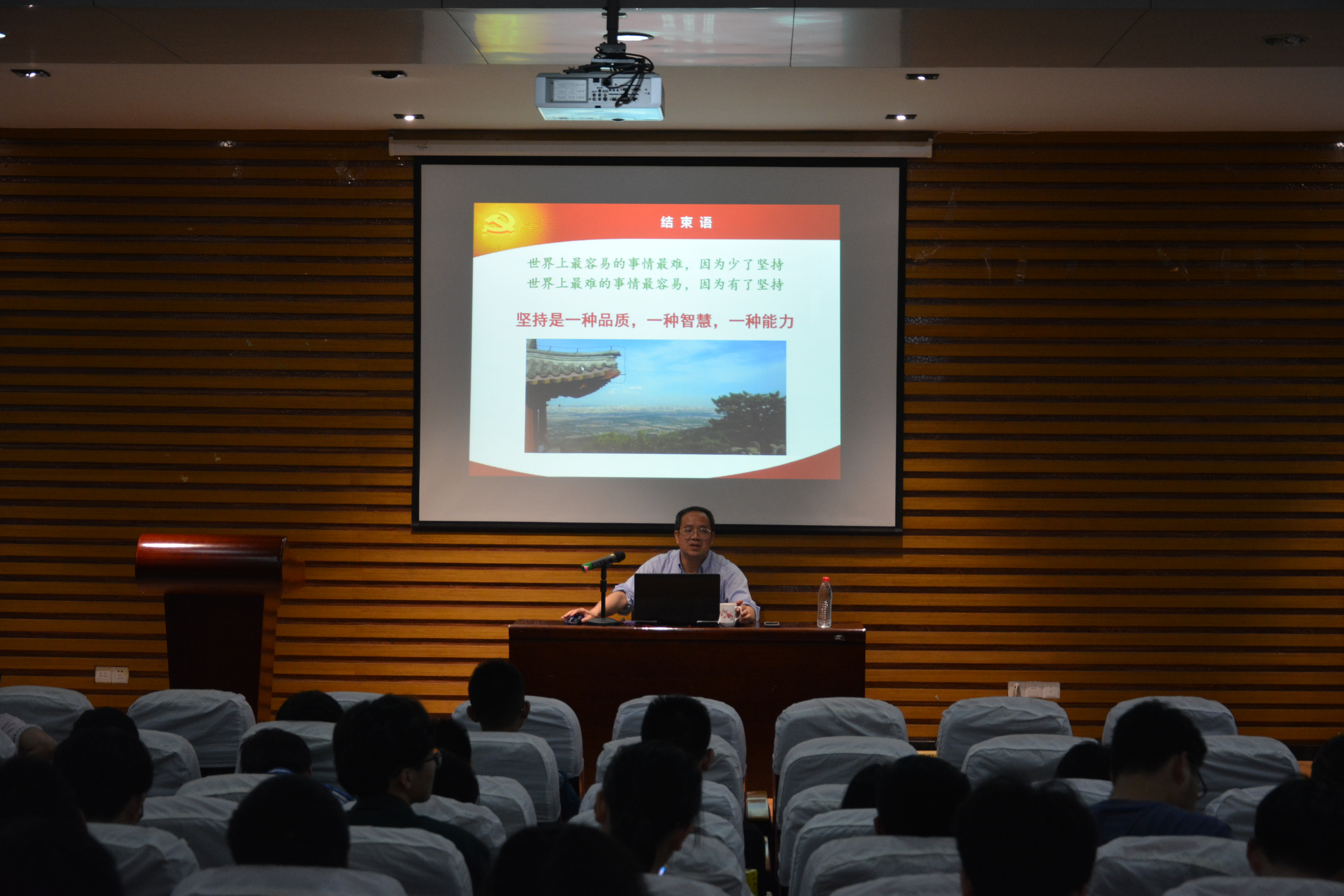 党委书记何希耕研究员为到场的所有同学开了一场奇趣横生的讲座,主题为“从严治党,打铁还需自身硬”。