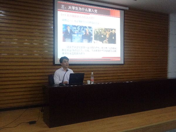 第十三期分党校培训在新楚楼北230召开。柯江锋老师作为主讲老师为入党积极分子们上了一堂关于“大学生应该积极争取入党”的党课。