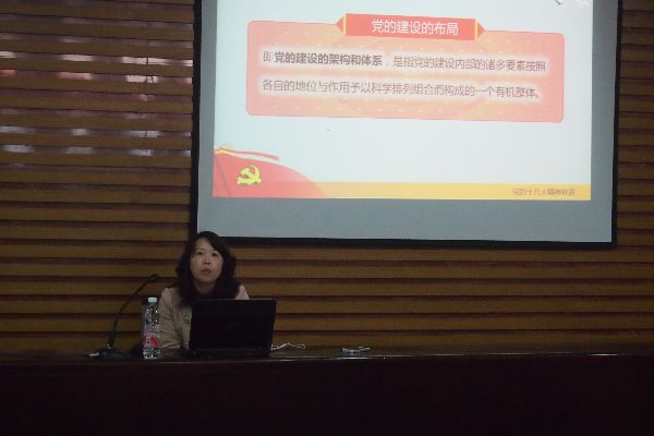 党委组织部部长徐晓丹老师为第十三期分党校学员上了本期分党校的第一课:党的建设新布局及其实现途径。徐老师指出,党的十八大对党的建设新布局的整体布局包括了一条主线、两大原则、三型组织、四自能力、五大建设等内容。在新时期,我们党必须重视和面对两个问题,即解决执政能力、提高领导水平,提高拒腐防变和抵御风险的能力,我们党必须保持思想、组织、作风的纯洁性,保持对共产主义的信仰和对中国特色社会主义道路的信念。我们必须加强对社会主义核心价值体系的学习研究,牢牢树立起对党的忧患意识、宗旨意识和创新意识。