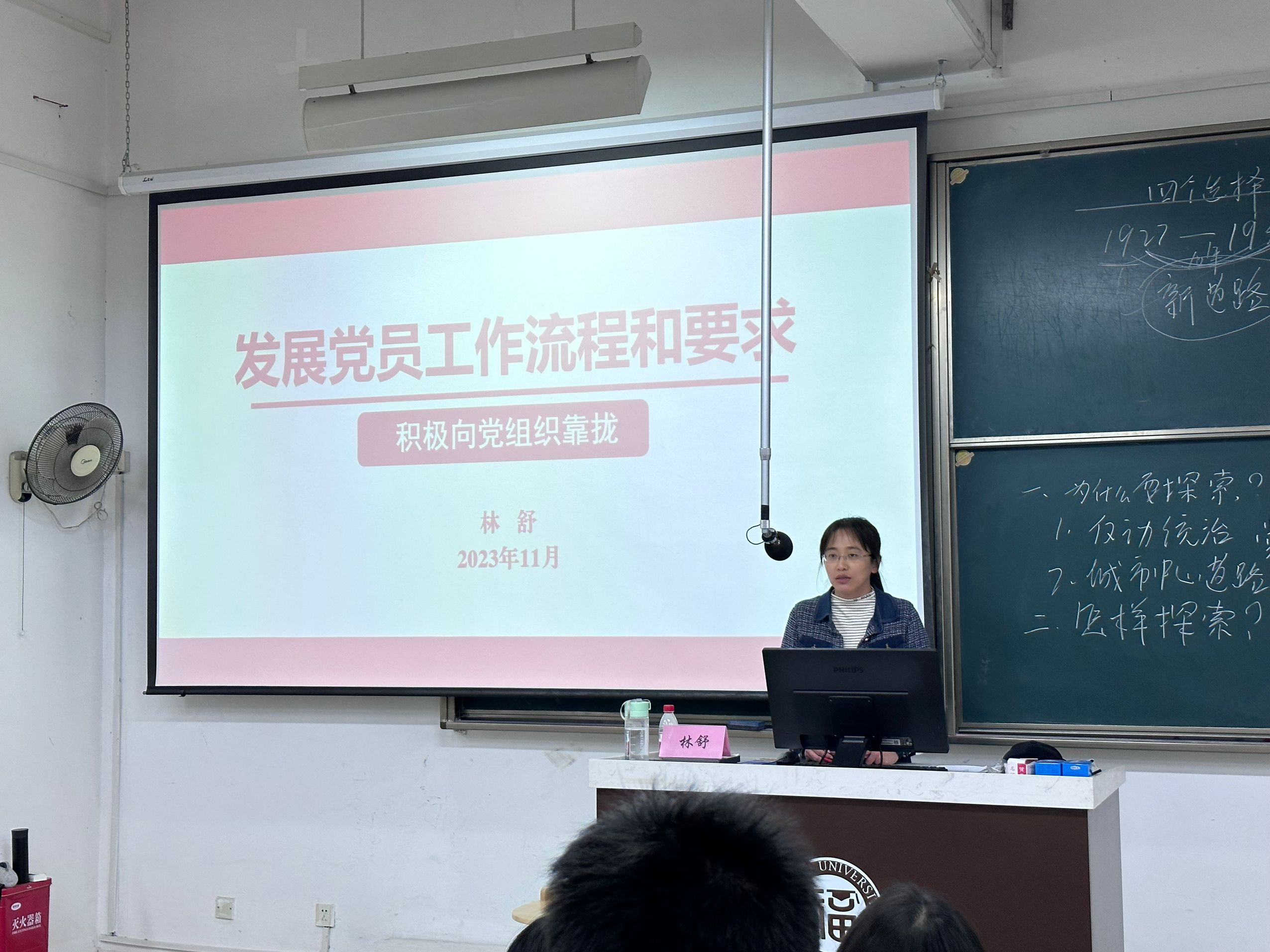 为进一步加强入党积极分子对发展党员工作的了解和认识,明确“不忘初心,牢记使命”的追求,促使学员们早日成为合格的共产党员,本次入党积极分子培训班第二讲特别邀请了校党委组织部林舒老师作题为《发展党员工作流程和要求》的党课。