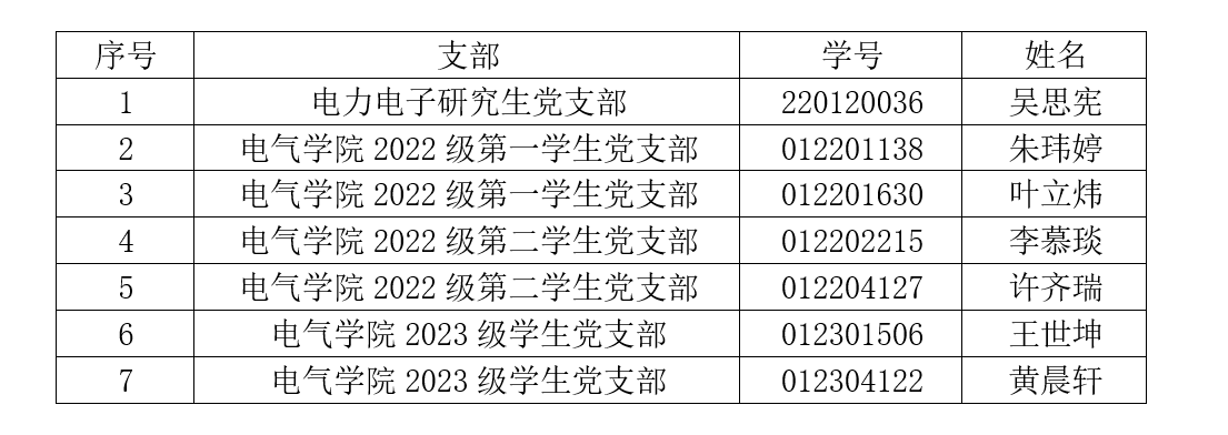 按照发展党员工作有关规定,经基层党支部研究,分党委于2024年11月11日备案同意吴思宪等7名同志为发展对象,现予以公示,公示期自2024年11月11日至2024年11月15日。