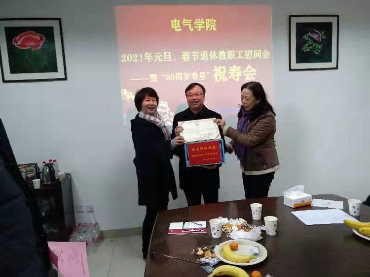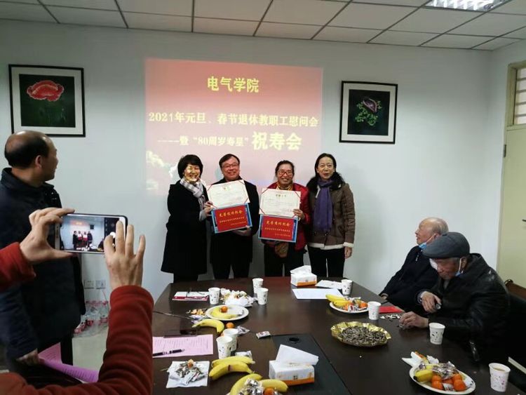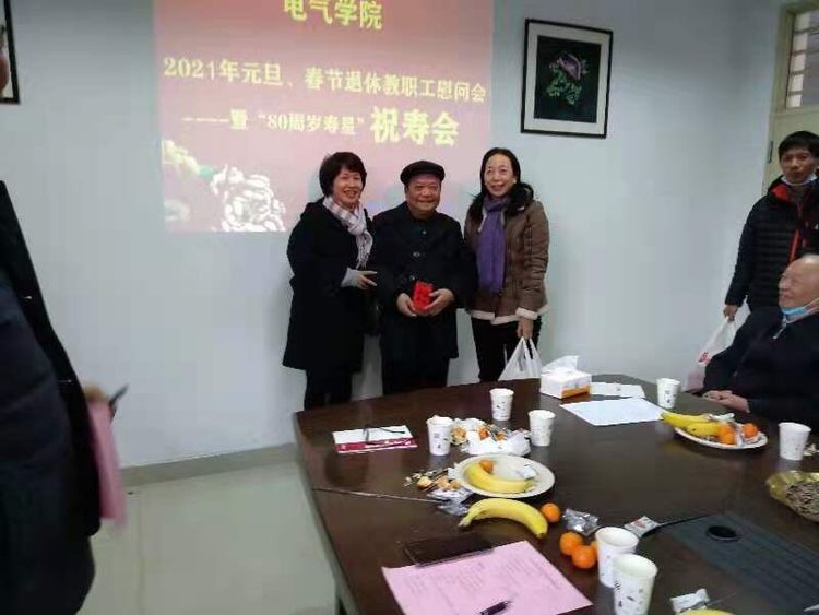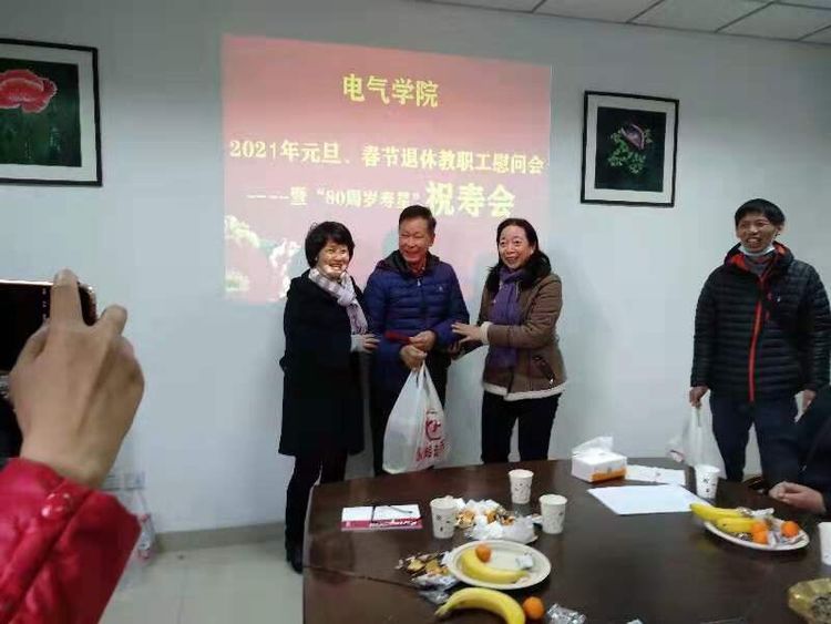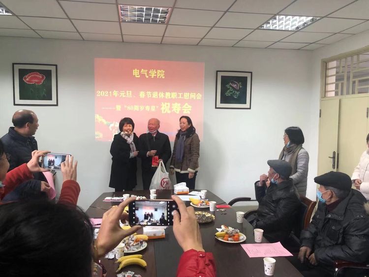 林雪健代表电气退协,向学院领导及到达现场的“80岁寿星”们汇报了电气退协在2020年所做的工作。其中,谈到了在2020年上半年退协委员们为了顺利完成疫情防控进行的“日报告”、“零报告”中所付出的辛苦。也谈到了在去年疫情严峻期的一些感人事例,比如:在大家出门处于束手无策的时候,办公室主任谢荣华给退协发来信息“老同志有什么困难需要帮助,我愿意当一位自愿者给予帮助”。