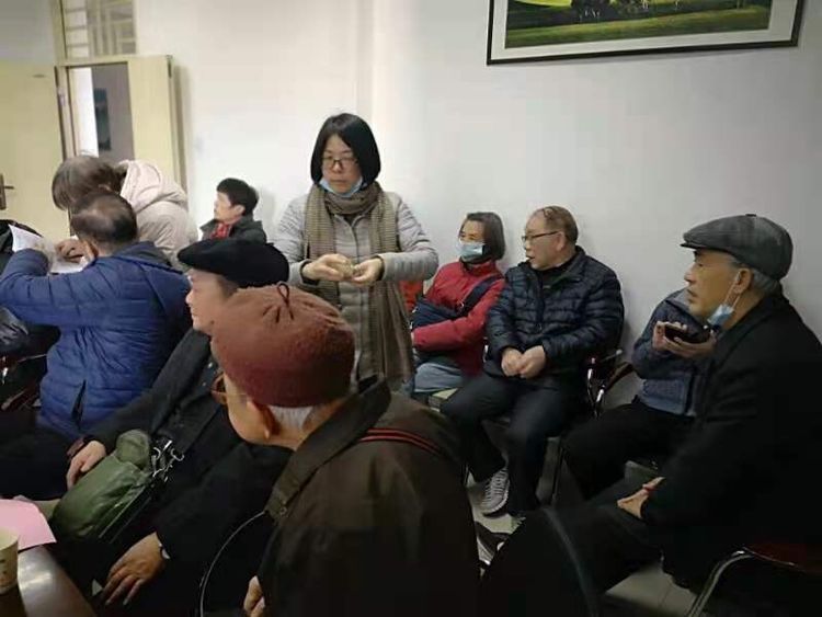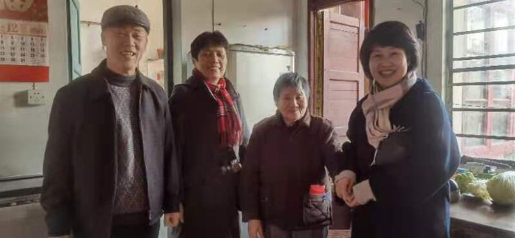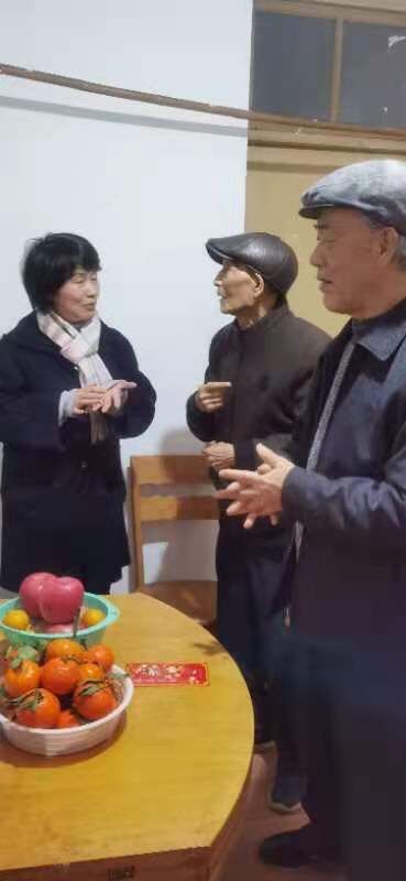 现场会后学院领导、工会委员、退休支委及退协委员分五组前往病困、独居老同志的家中或养老院进行元旦、春节慰问,这是慰问郭廷惠老师。
