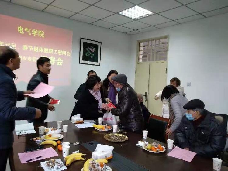 学院党委书记占永琼,院长许志红,副院长王武亲临慰问会现场,院工会主席邹阳及陈少斌等工会全体委员全部到场,退休支委和退协委员也全部参加。慰问会由退休党支部书记李光辉主持。于2021年1月18日下午在至诚电气会议室举行。