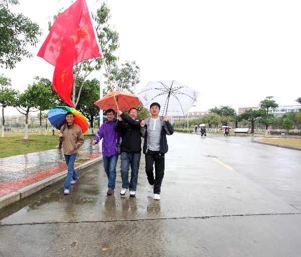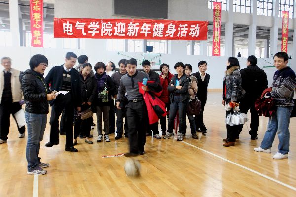 开展了环旗山校园系列趣味活动。100多位教职工从学院办公楼出发冒着濛濛细雨徒步登上了行政南楼边上的小山头,大家一路说说笑笑,很多教职工是第一次登上此山,也第一次感受到了“美丽校园”建设所取得的成绩。随后,大家来到了风雨操场,参加趣味射门和趣味投篮,平时大家通过电视看起来比较容易完成的动作,到了自己的脚下和手中,似乎就不那么利索了。“哎呀,就差一点点……”,好几个老师跺跺脚,感到很可惜。差之毫厘谬以千里,还是平时多锻炼锻炼吧。