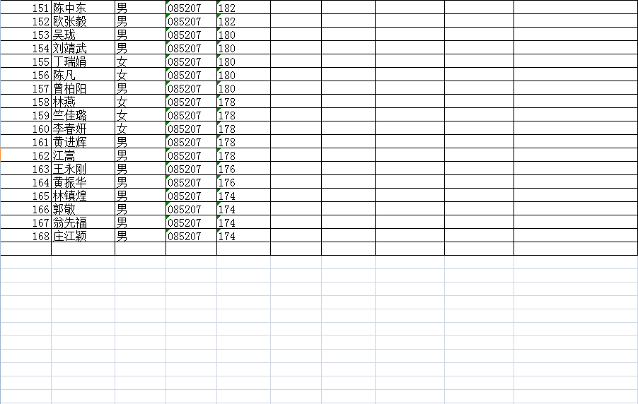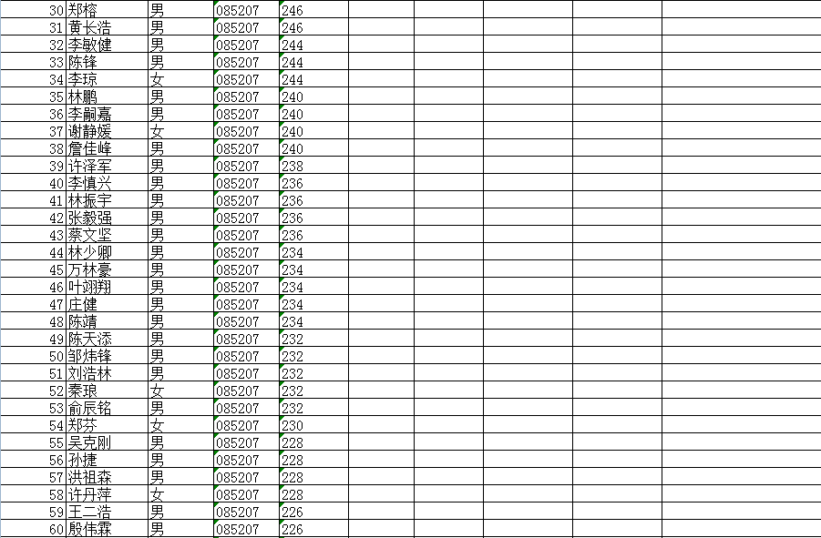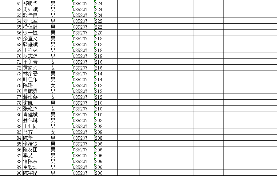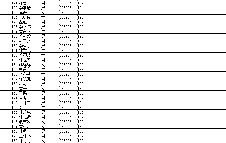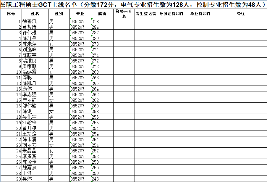 在职工程硕士GCT上线名单(分数172分,电气专业招生数为128人,控制专业招生数为48人)
