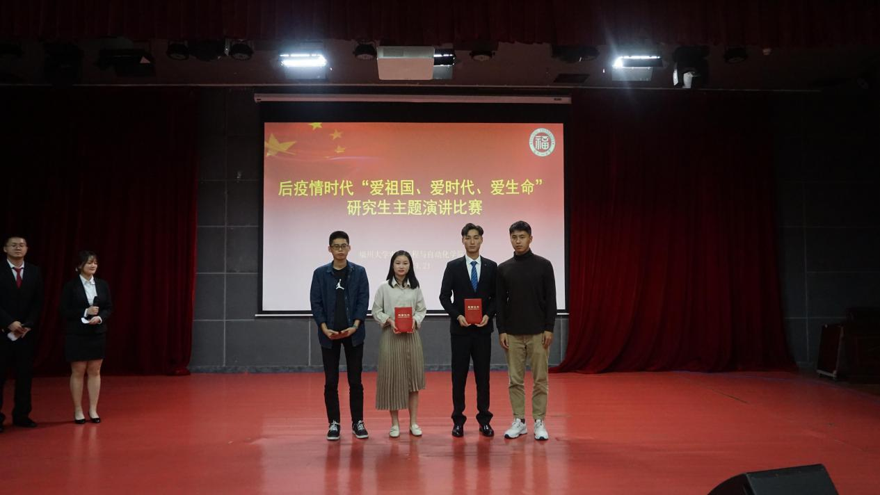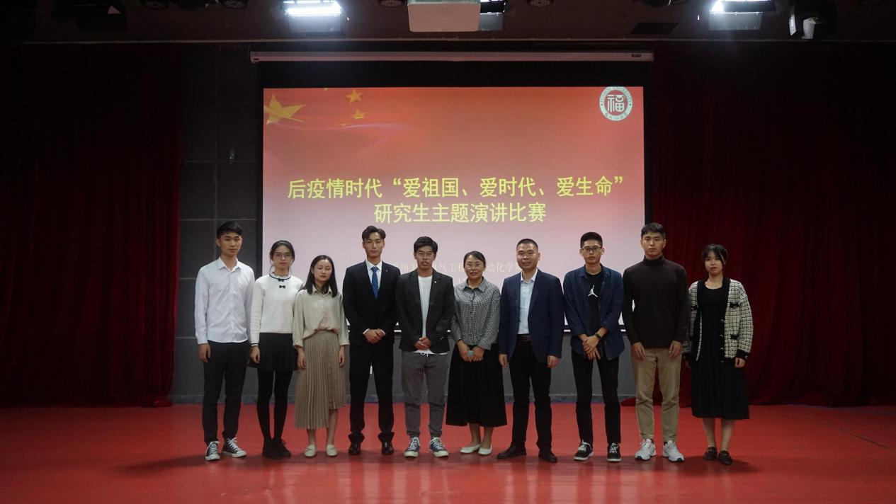 后疫情时代“爱祖国、爱时代、爱生命”研究生主题演讲比赛在校图书馆明德厅顺利落幕。本次大赛是围绕“爱国家、爱时代、爱生命”开展的主题教育演讲比赛,目的在于引导广大师生树立正确的人生观与价值观,继承和发扬爱国主义传统,实现人生价值,追求生命的意义。担任本次比赛的评委有学院团委书记沈庆斌老师、研究生辅导员许海燕老师、研会主席张钰健同学和研会副主席陈舒迪同学。