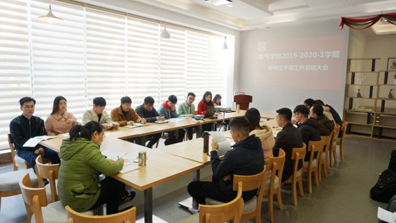 在会议过程中,首先由各个研会部门和党支部汇报本学期的工作,回顾本次研电赛的一些经验和教训,总结工作中的优点和不足,提出下学期的一些工作计划和新颖的思路,做好未雨绸缪。其次许海燕老师根据以往的学生工作经验和未来的工作安排给在场干部提出了一些看法和要求:1.作为干部我们要以身作则,起到先锋模范带头作用。2.我们要学会组织大型活动,敢于去尝试,敢于去组织。3.活动及时总结归档,这样方便自己,他人进行参考学习,总结不足,提升经验。4.活动要有预案,一个成功的活动离不开一份考虑周到的计划,一份详细的预案可以为我们的活动保驾护航。5.要有想法要创新,作为干部,一个个新颖的idea不仅仅能让效率提升,起到事半功倍的作用,同样也会使我们的自信心爆棚。6.工作态度与工作出发点,作为干部,要以一种尽心尽力,尽职尽责的主动式工作,广大干部要牢记习总书记“撸起袖子加油干”的淳淳教诲,力戒庸懒散浮拖,积极主动做事。7.关于成立研究生志愿者服务团的一些具体事宜。