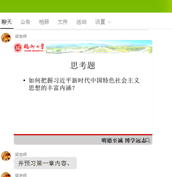 老师在开课前一周就通知大家网上授课的途径,并提醒同学们进行预习
