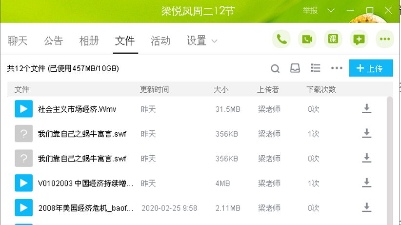 老师会及时上传一些上课用到的课件及相关视频供同学们学习