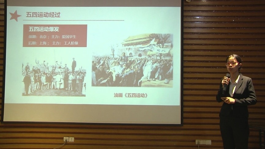 第二位出场的是电力电子研究生党支部书记黄秀玲,她的微党课题目是《五四精神,薪火相传》。黄秀玲同志的微党课带我们回顾了五四运动的背景及不同时期的五四精神,她强调弘扬五四精神的本质就是把个人责任担当具体体现在不懈奋斗中,在生活、学习、工作中体现自己的担当。