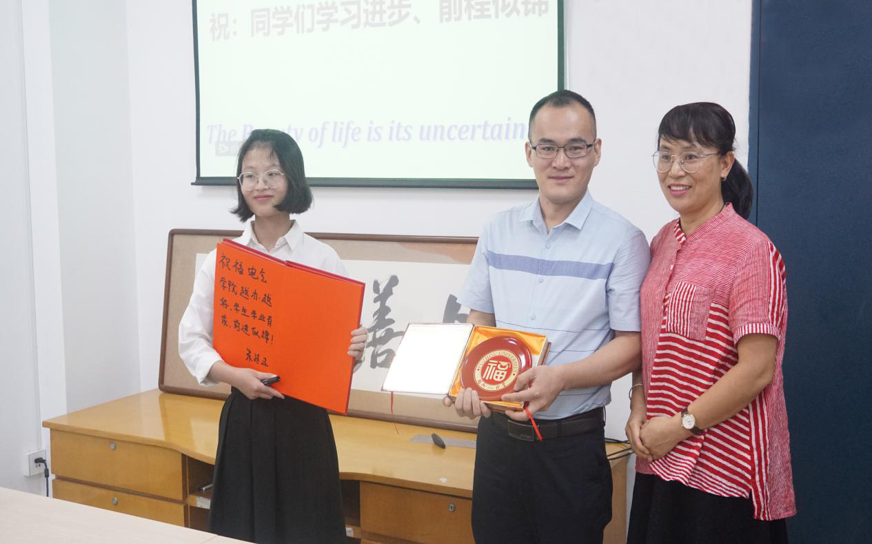 最后,许海燕老师为本次讲座做了总结,她表示,我们这位杰出的校友在科研以及生活中认真、勤勉的态度,为电气学子树立了优秀的榜样,希望大家能通过本此讲坛有所收获。朱延正学长还为学院留下一幅墨宝,许海燕老师代表学院赠予“福盘”以示感谢。至此,本次“冠生说道”讲坛终于落下了帷幕,朱延正学长的精彩演讲为研究生科研学习指明了方向,对研究生的进步成长大有裨益!
