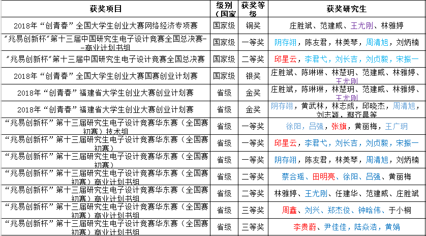 学科竞赛获奖情况(部分)(彩色标注的均为自动化方向研究生)