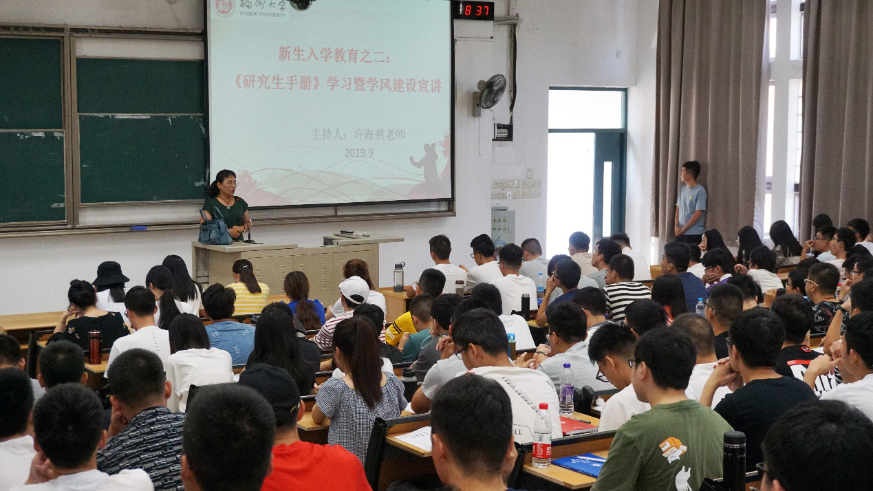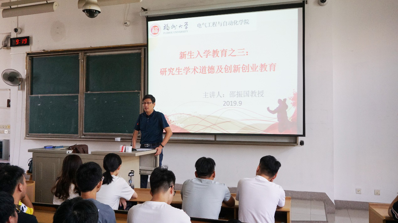 9月8日上午,学院副院长邵振国教授为新生进行入学教育。邵老师强调了研究生学习特点,就如何和导师更好地沟通和交流提出很多很好的建议,为新生研究生更快适应研究生生活提供很大帮助。