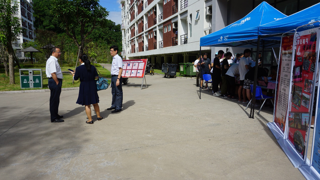 党委书记何希耕、副院长邵振国等学院领导也莅临现场视察新生报到的情况,向迎新工作人员和新生表示关切,现场温情满满。4日晚上,教学秘书郑丽华和蒲善艳老师带着全体研究生新生学习《研究生手册》,让新生们能够尽快熟悉学院研究生教育管理、学籍与培养管理、毕业与学位管理等相关规定。