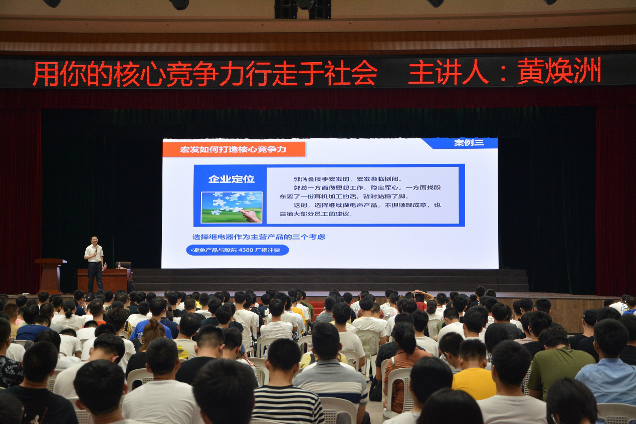 2019级新生开学典礼。下午2:30,研究生和本科新生们聆听了学院党委副书记黄国辉老师《奋斗,就在福大》报告,以及厦门宏发电声股份有限公司人事总监黄焕洲的《用你的核心竞争力行走于社会》报告。黄国辉老师强调了青春总与奋斗相联系,而大学,是奋斗的又一征程。他鼓励新生们努力奋斗,在大学学习生活中绽放出美丽的光彩。