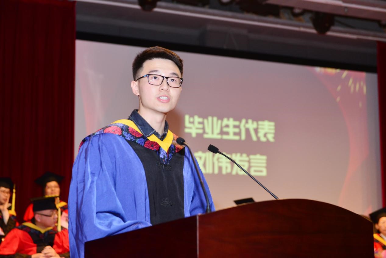 接着由毕业研究生代表刘伟上台发言,他诚挚地表达了对母校两年半培育之恩的感激,并立志走上工作岗位后要回馈社会,为母校争光!教师代表周扬忠教授教导我们在以后的工作生活中要以一个科研工作者的素养和态度去面对和解决遇见的问题,要敢于迎难而上,开拓创新。随后毕业生们依次走上主席台,学院领导为毕业生依次颁发学位证书,执拨穗礼,并与其一一合影留念。最后由院长许志红教授致闭幕词,许院长以“好好生活,努力工作”为主题,对毕业生提出了四点期望:不忘初心,脚踏实地;调整自己,适应社会;抓住机遇,大胆尝试;积极向上,乐观开朗。并借用习总书记在四川的讲话,教导我们从熟悉的校园走入陌生的社会后一定要不断磨练自己,需知做人不一定要风风光光,但一定要堂堂正正。