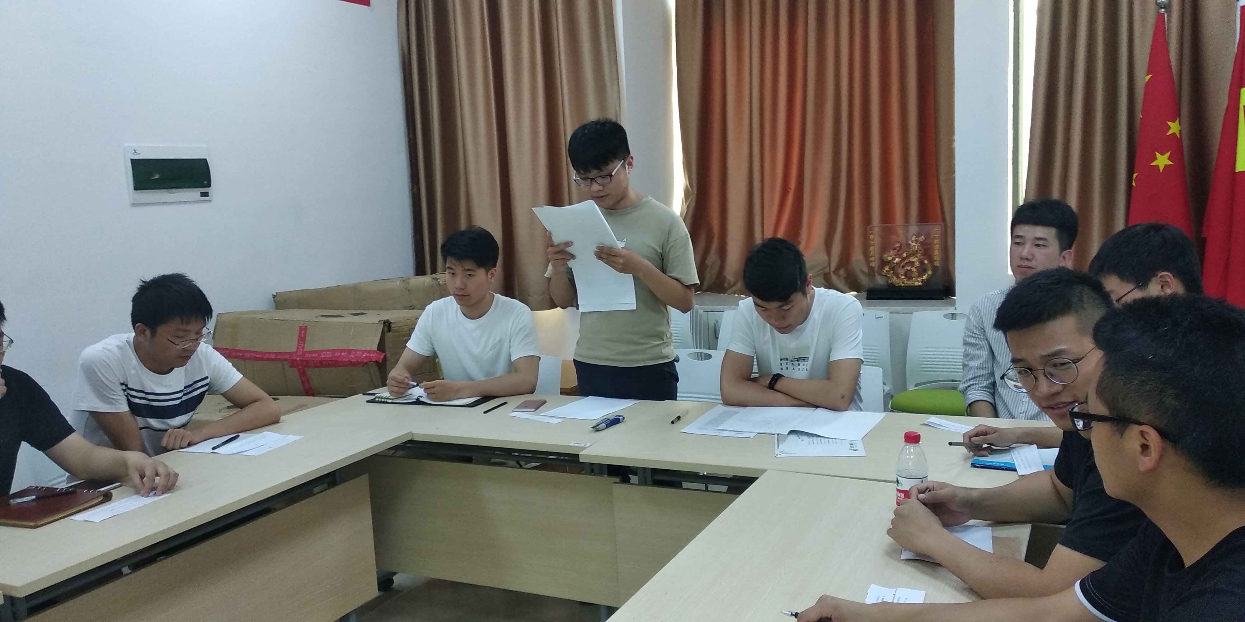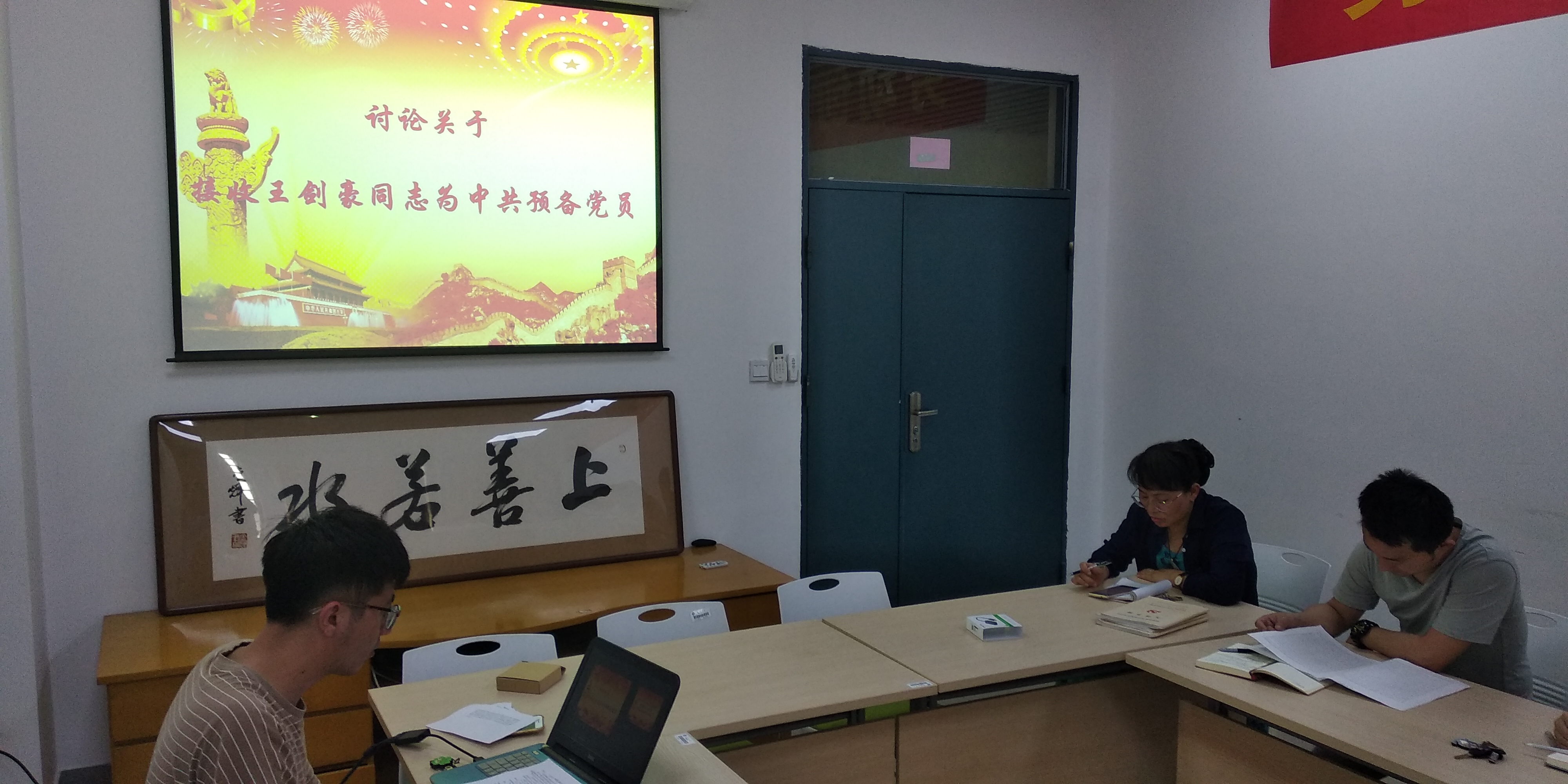 会议开始,支部书记陈越灵同志报告到会情况,并且提出此次会议需严格履行《党章》、《细则》规定手续,讨论须坚持党员标准,切实开展批评与自我批评。首先由发展对象江润宣读入党志愿书,入党介绍人陈越灵与黄鑫发表意见,副书记韩志平同志汇报支委会审查意见,与会党员充分讨论并发表个人意见。全体正式党员进行无记名投票表决,发展对象江润同志全票通过。接着到发展对象王剑豪宣读入党志愿书,也按规定的接纳预备党员的仪式完成相关流程。最后,支部书记陈越灵对江润、王剑豪提出要求和希望,要求其再次端正入党动机,端正的入党动机是一名积极分子的进入党这个大家庭的首要条件,也是成为一名党员终身要坚守的信念。