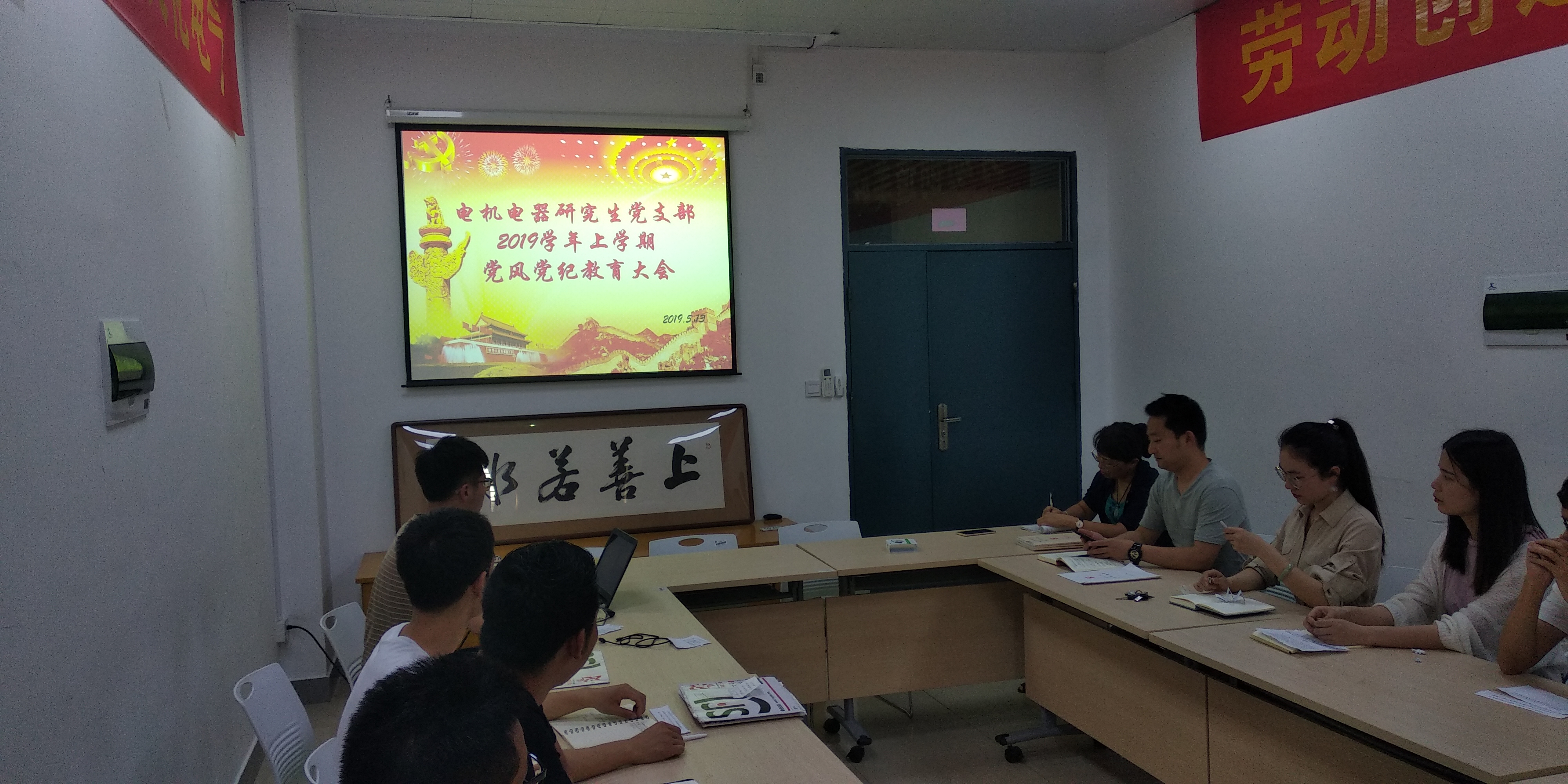 北211会议室召开接收发展对象江润、王剑豪为中共预备党员大会暨党风党纪教育大会。会议由支部书记陈越灵同志主持,电机电器研究生党支部全体党员、发展对象江润、王剑豪同志出席会议,组织员胡培杰、研究生辅导员许海燕列席会议。
