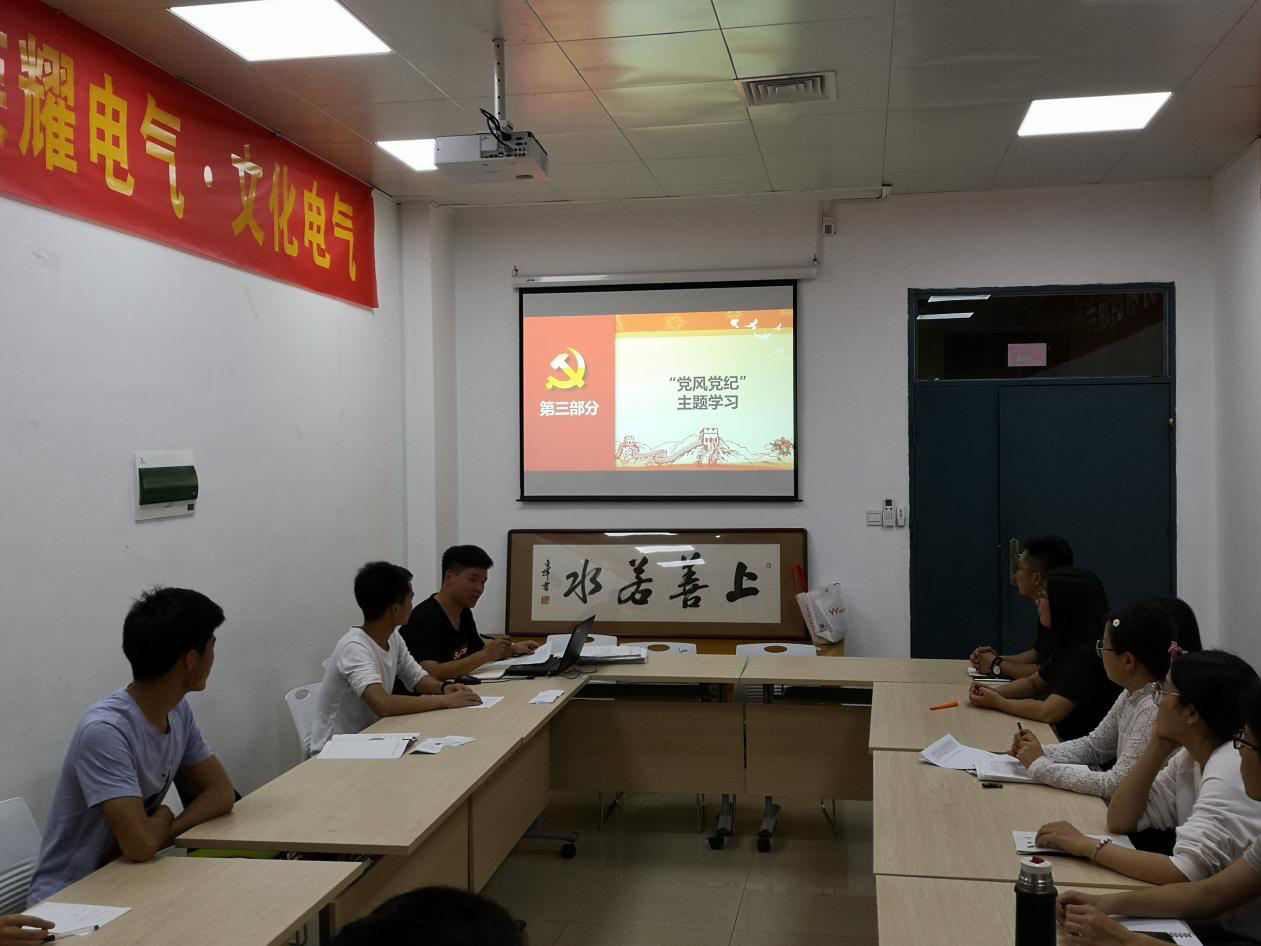 新楚楼北211召开支部大会,会议由电气工程第三研究生党支部书记曾峰同志主持,支部全体党员同志、预备党员和发展对象参与此次会议。本次会议围绕讨论张旭彬同志按期转为正式党员和接收吴昕翀同志成为预备党员的议题来开展,并进行“党风党纪”主题学习,增强党员干部的纪律意识。