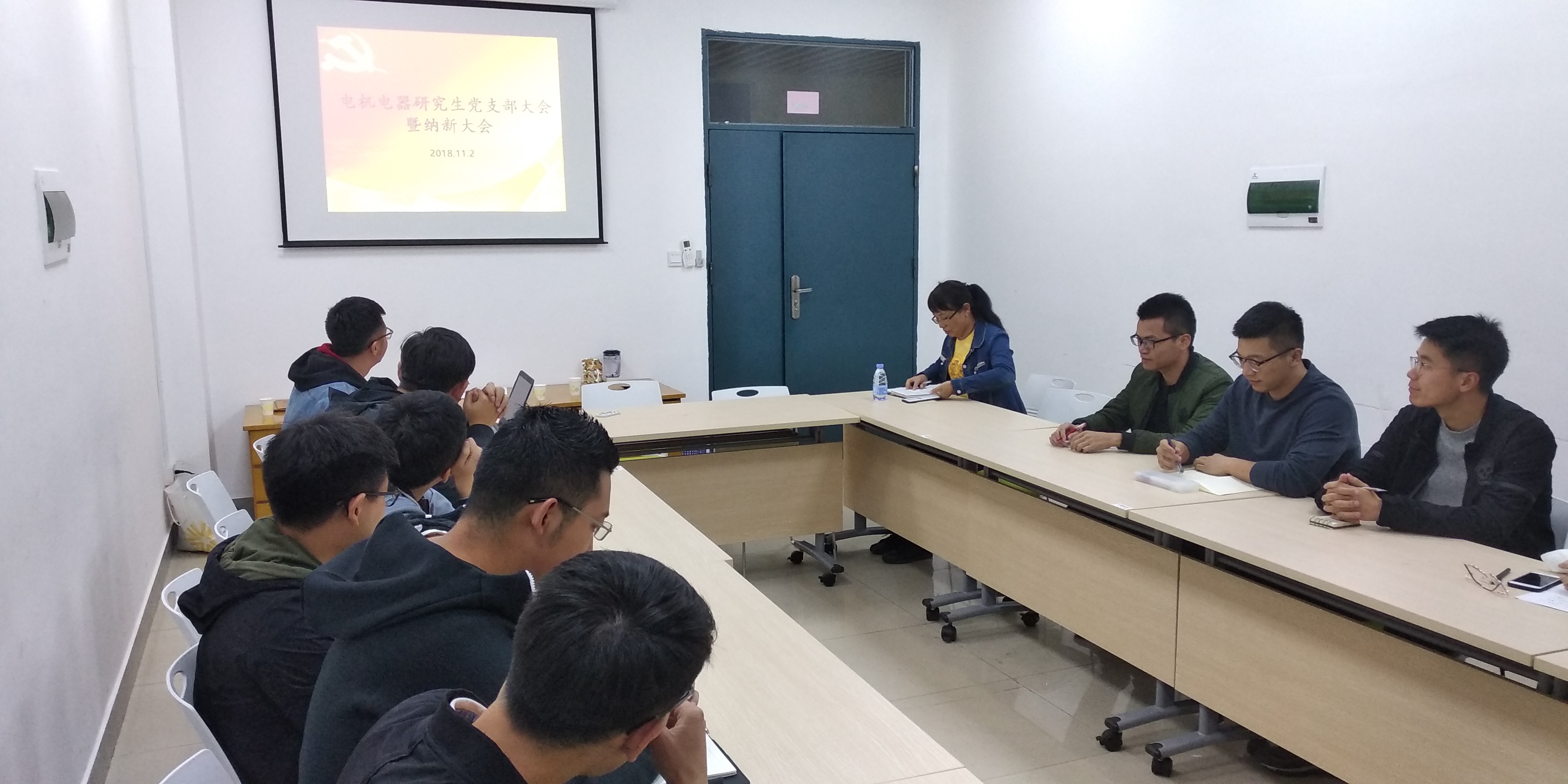 北211会议室召开支部大会暨纳新大会。会议由支部书记陈越灵同志主持,电机电器研究生党支部全体党员及预备党员同志参加会议,研究生辅导员许海燕老师出席了本次会议。