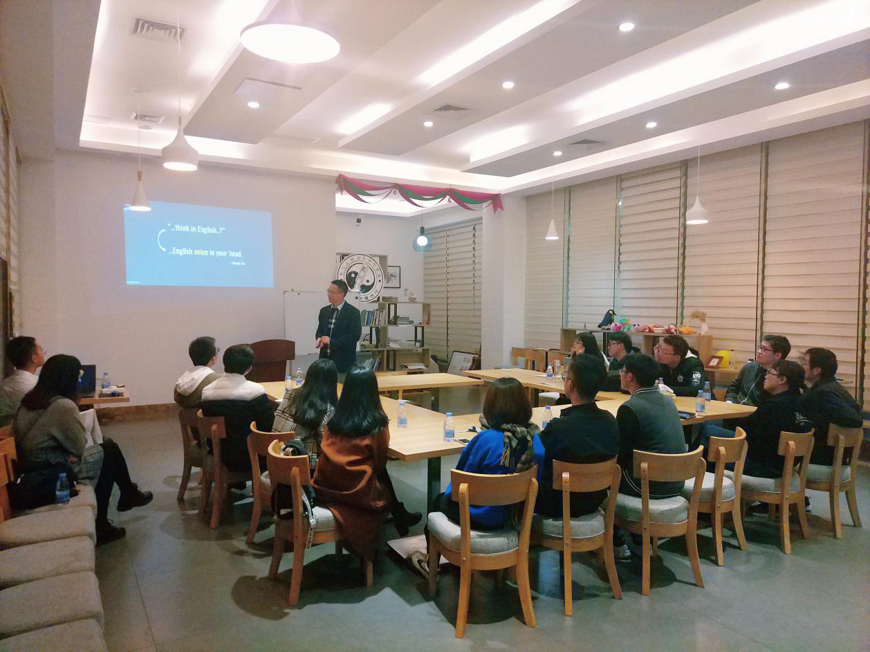 本次沙龙的主题是“论英文口语的重要性、难点和解决办法(Oral English - What, Why and How ?)”。活动一开始,何荣勤学长向大家提问——“为什么要学习英语?我们一定要学英语吗?学英语有什么好处吗?”同学们列举了学习英语的诸多好处,何荣勤学长把汉语和英语形象地比作人的左手和右手,用以告诫大家在当前的社会背景下,英语和汉语同样重要。何荣勤学长继续引导话题深入,引导学生找出英语“听(Listening)”、“说(Speaking)”、“读(Reading)”和“写(Writing)”四个必要环节中最重要、最实用的的一环——“说”,通过“VFCU”即Voice、Fascinating、Confidence和Unforgettable四个方面内容的阐述,告诉我们英语尤其是英语口语的重要性,并借助阿里巴巴集团创始人马云先生学英语的经历来激励大家,希望大家能够重视英语口语的学习。