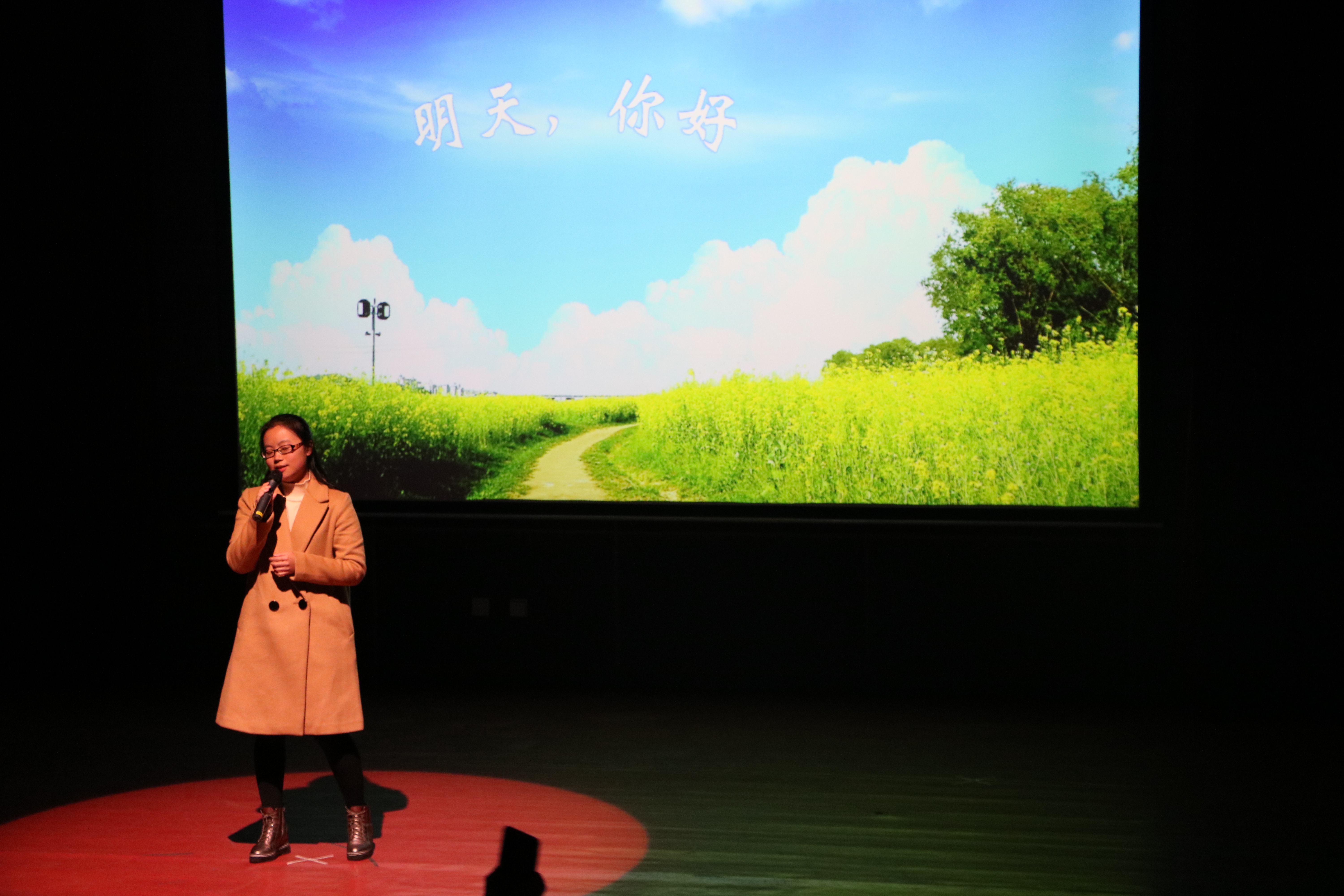 最后,晚会在张梦婕同学的一曲《明天,你好》中落下了帷幕。晚会虽然落幕了,但你们脚下的道路还在继续,美好的明天与远方在等待着你们!在此,我们真诚地祝愿毕业生们一帆风顺、前程似锦!今日你们以母校为荣,明天母校以你们为傲!