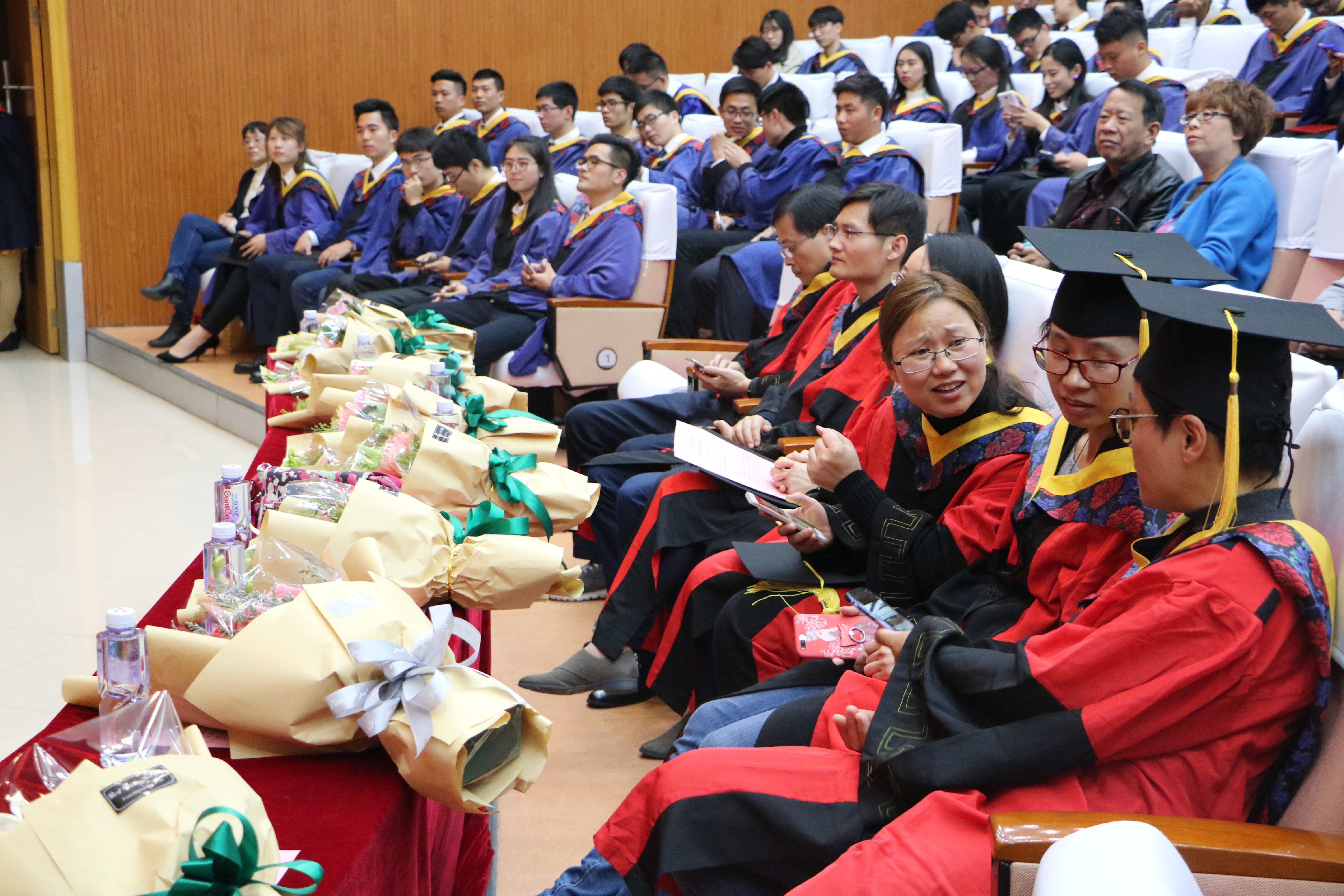 在图书馆明德厅隆重召开2018届研究生(春季)毕业典礼暨学位授予仪式。院党委书记何希耕研究员、院长许志红教授、院党委副书记黄国辉老师、副院长邵振国教授、院长助理王武教授和学院教师代表出席了本次学位授予仪式。仪式由院党委副书记黄国辉老师主持。参加本次典礼的还有圆满完成学业的117名硕士研究生以及远道而来的部分学生家长。