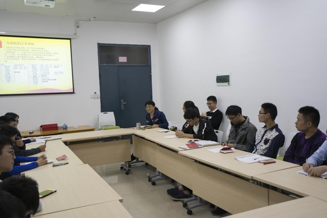 首先,支部书记何幸同志简单介绍了电力电子研究生党支部的基本情况,其中正式党员20人,预备党员0人;随后,新老生党员互相进行自我介绍和交流;