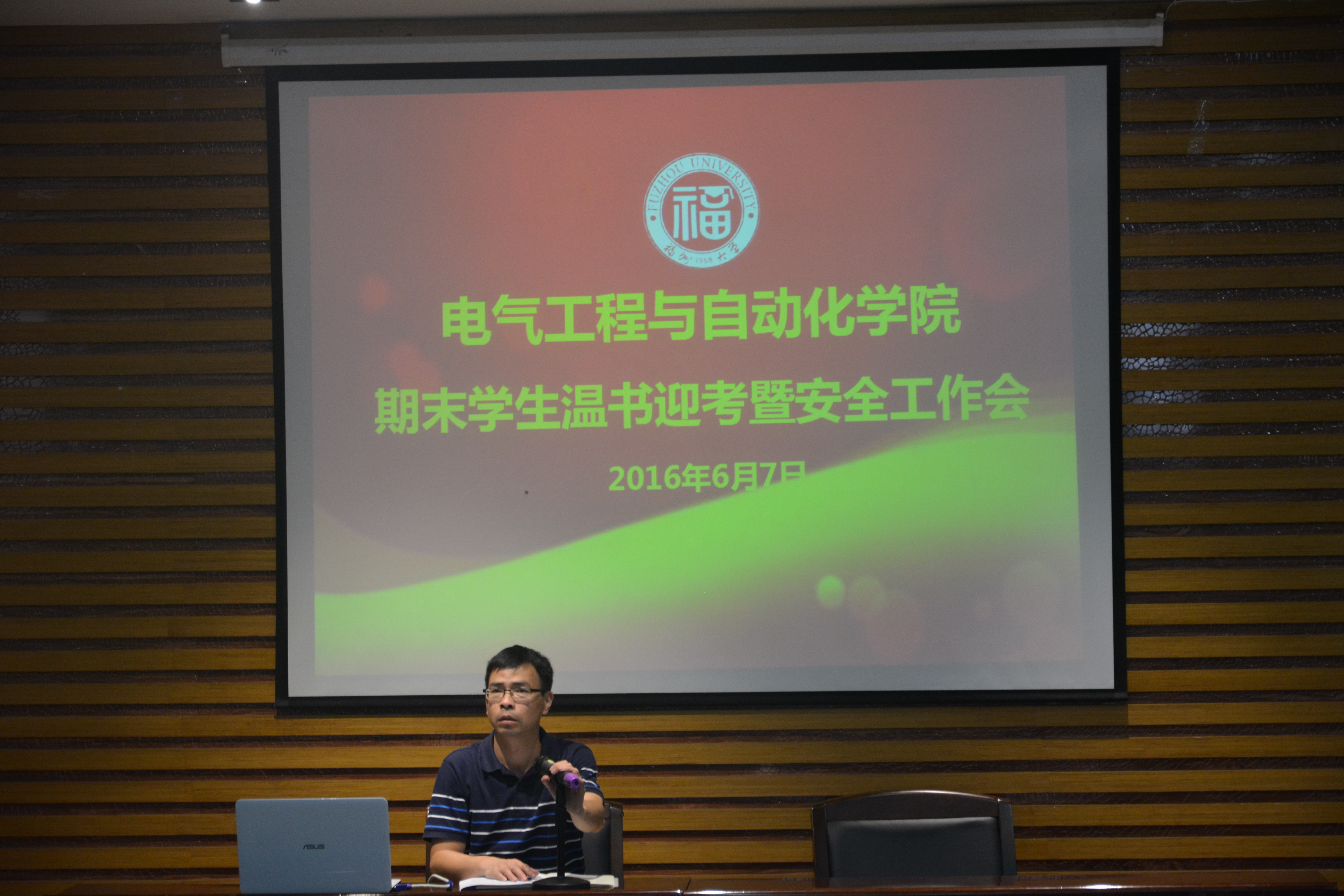 大会伊始,进行会议的第一项议程——“期末学生温书迎考暨安全工作会”。张志雄老师针对近来大学城发生的几起诈骗及安全案件,提醒同学们要加强安全意识,注意人身和财物安全。之后,张志雄老师谈及如今学校对考试舞弊的处分以及对手机入考场的处罚力度加大的规定,譬如作弊也将导致无法拿到学位证书等,呼吁同学们珍惜前程,不要抱有侥幸心理,好好“温书”才是正确迎考策略。
