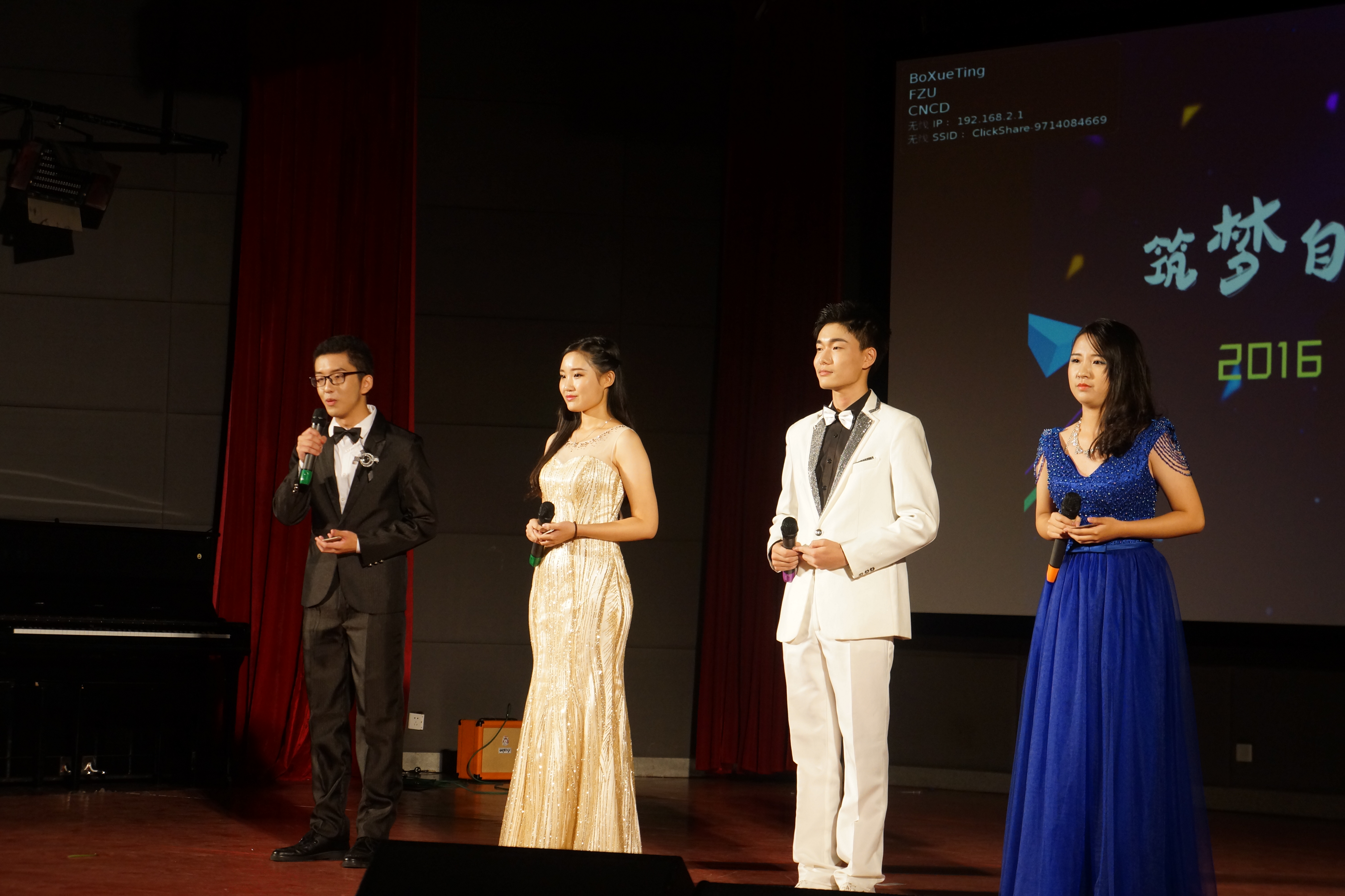 当晚晚会现场歌舞飞扬,精彩纷呈。开场时由酷玩协会带来《lucky strike》,劲爆的旋律与酷炫的舞姿瞬间点燃了现场的气氛,迎来掌声不断。紧接着王燕彬学长以感性的歌声唱响了《我的中国心》,也触动了现场同学们心中的中国梦。而后徐旺平老师演唱的《不老的草原》,更是仿佛将同学们带到大草原一般,宏亮的歌声飘荡在现场每一个同学心间。
