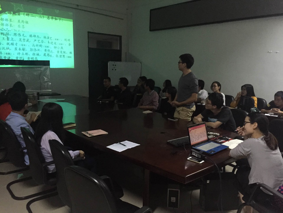 电力研究生党支部的基本情况及对支部党员的几点要求,新老生党员互相进行自我介绍和交流;接着,支部会议结合校组织部要求,开展了“两学一做”第三专题——“坚持根本宗旨,发挥党员作用”的交流与学习。支部党员认为研究生党员应带头遵守学校的规章制度,作为一名研究生,带头抵制学术不端行为。支部还结合习近平纪念长征八十周年讲话和十八届六中全会精神进行了交流学习。