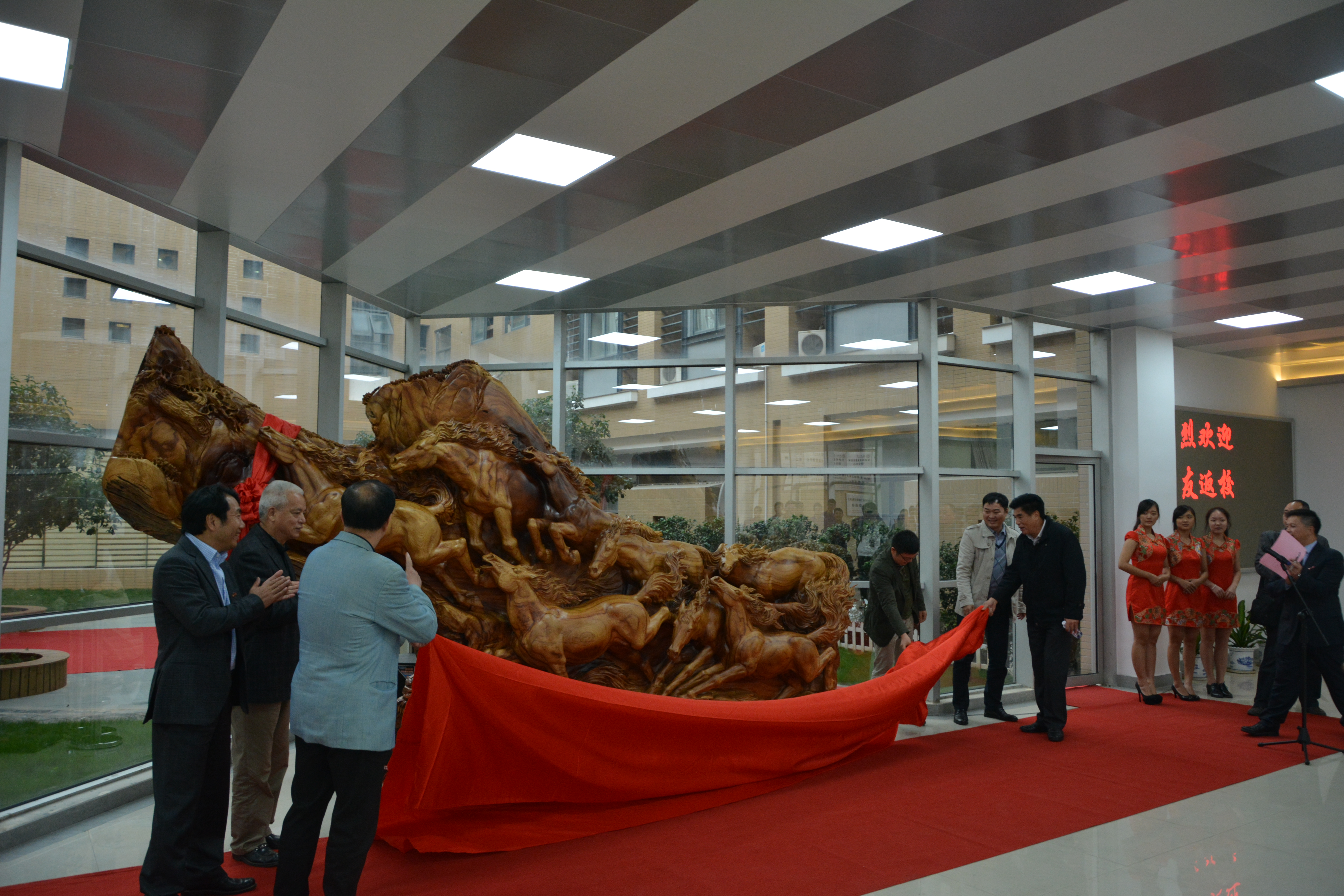先进控制研发中心共建签约捐赠交接仪式、校友企业教学基地签约仪式以及恒锋自动化专业新生奖学金的签订等活动。至此,大会圆满落幕。大会结束后,校友们与一众领导在新楚楼一楼大厅进行《八马骏图》根雕揭幕仪式并在学院门口全体合影留念。