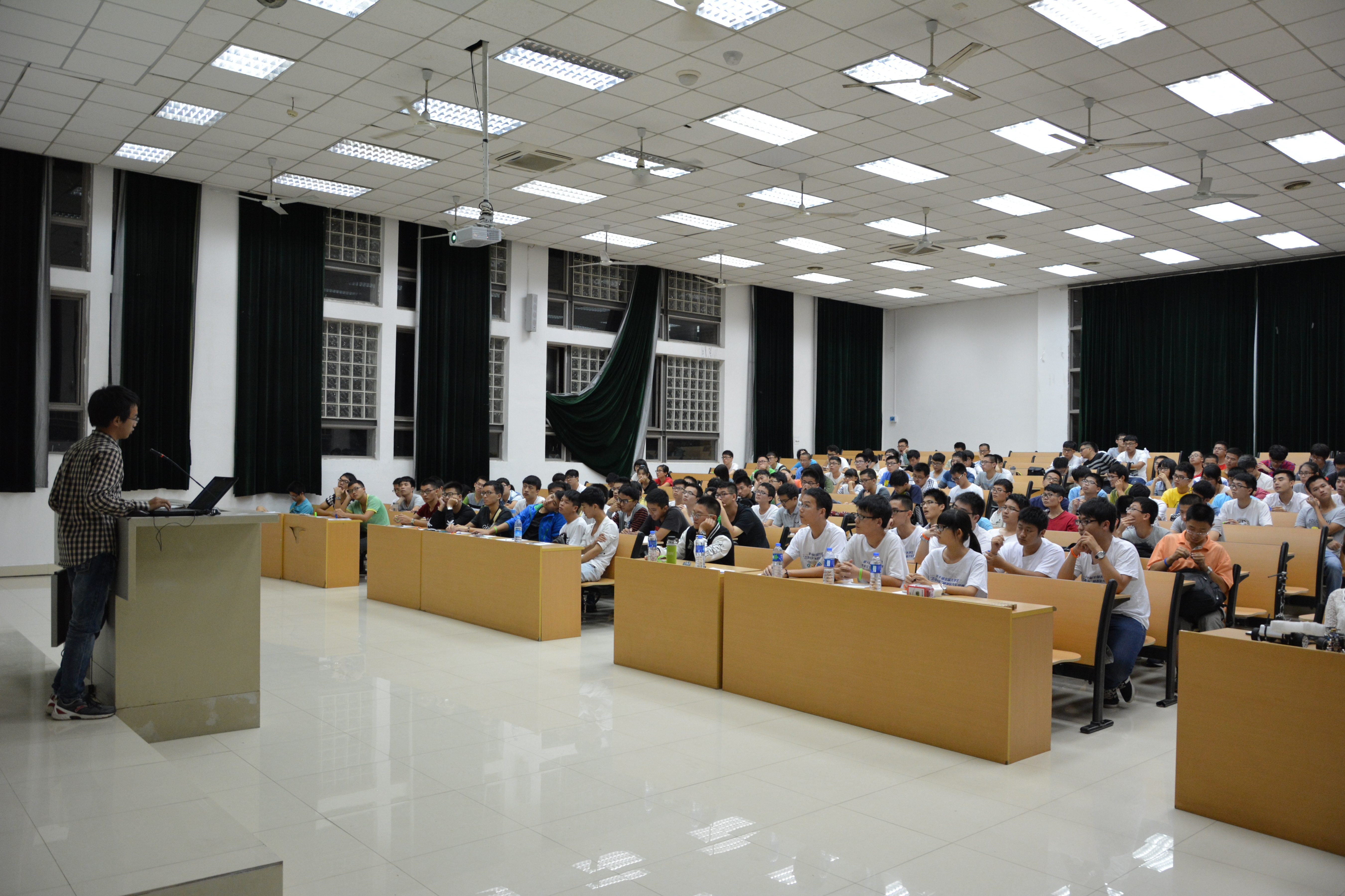 在宣讲会开始时,主持人首先播放了一段关于福大206智能车队的视频,概括性的展示了车队的历史,以及车队近几年来获得的成绩,使得原本对206智能车队知之甚少的同学们对这个团队有了大致的了解。随后由熊化春同学对车队的起源、车队获得的成绩等进行了细致的讲解,并向大家展示了车队每年获得优异成绩后的合影以及比赛的画面。紧接着庄一展同学选出了他所在的CCD组进行了详细的介绍,向同学们展示了他们所需要学习的内容、平时研究的地点以及制造智能车的基本流程,这些都给同学们留下了深刻地印象,让他们明白了研究智能车不是一件简单的事情,需要自己确确实实地付出努力、汗水和劳动才能取得成绩。而接下来的王仁康则为同学们介绍了在研发智能车的平时生活中所发生的种种趣事,不时引起台下一阵阵的笑声。为了活跃气氛,206智能车队还特地设置了抽奖环节,每一位宣讲人都会随机抽取一些观众获奖。最后幸运的5号获得了最终的大奖——四轴飞行器,在全场羡慕的眼神中,宣讲会顺利结束。