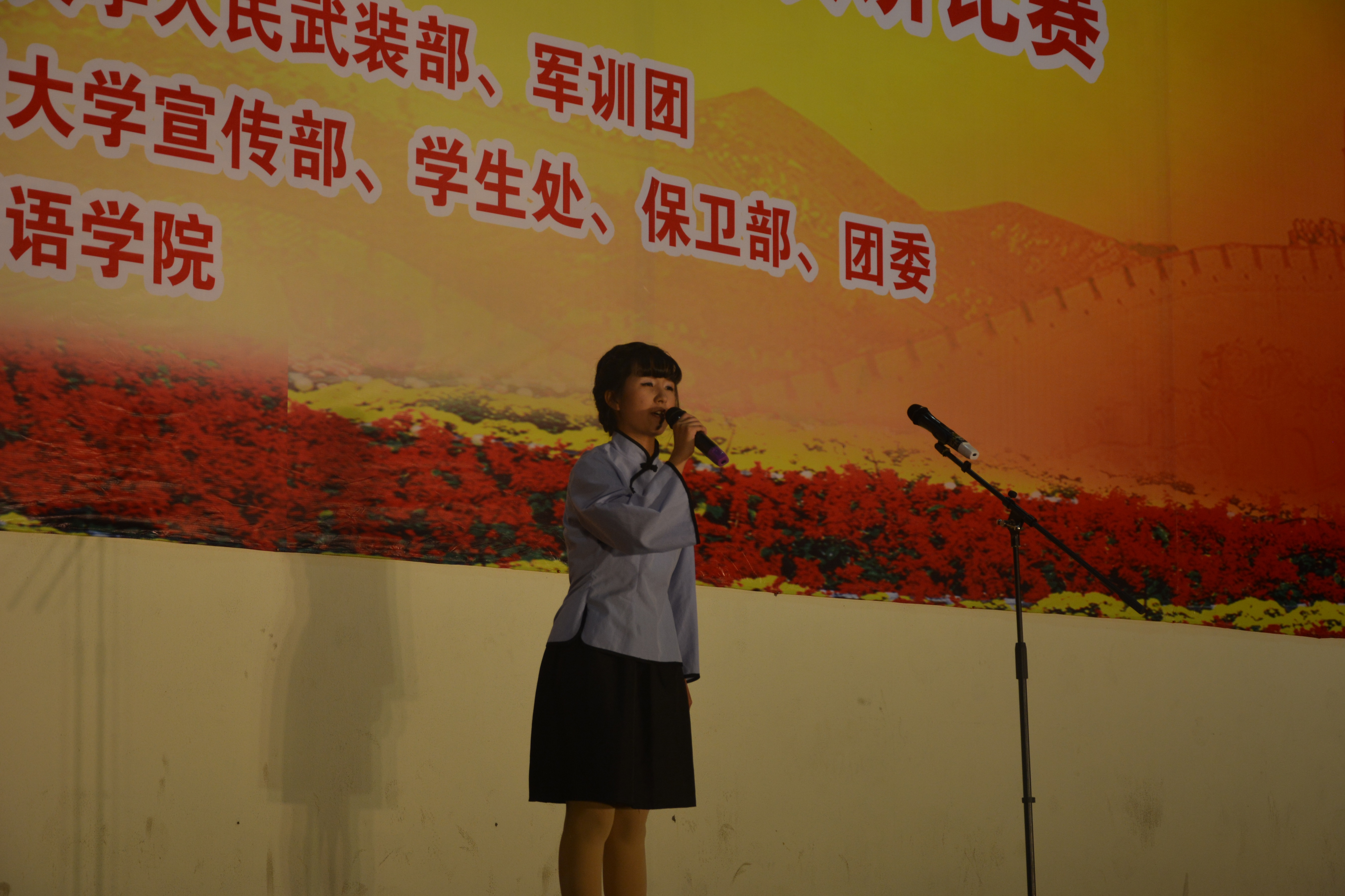 2015年10月26日晚上7点,距离新生军训结束还有7天时间,新生们迎来了期待已久的校级演讲比赛。此次演讲比赛的主题是“弘扬伟大抗战精神,同心共筑强大国防”。