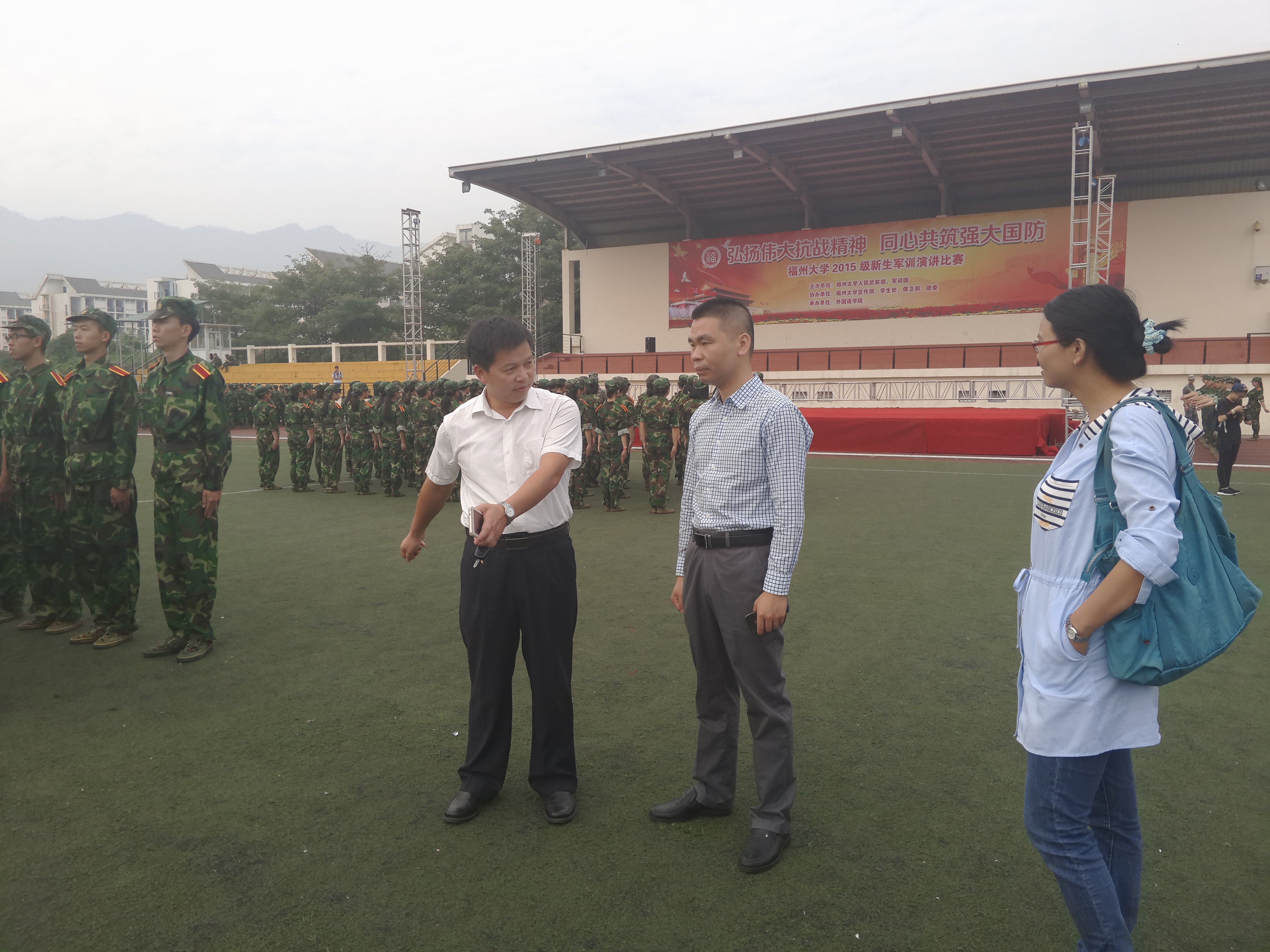 的军训情况给予了高度重视。黄国辉书记关切地询问了新生军训的情况,新生辅导员沈庆斌老师、段小华老师对军训现状进行了详细的介绍,得到了黄国辉书记的充分肯定。黄国辉书记表示,军训对当代大学生意义重大,我们应该把握好军训这个锻炼自我的机会,培养吃苦耐劳的精神,发扬“同心协力,艰苦奋斗”的光荣传统。