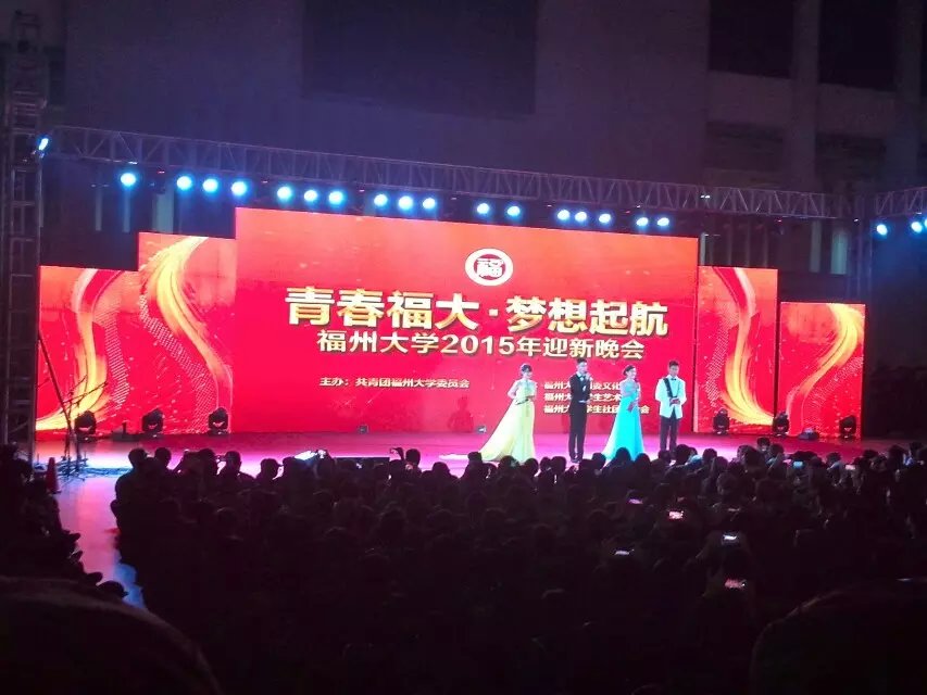 是日晚,大家期待的2015新生迎新晚会如约而至,可是天公不作美,晚会地点更改为风雨操场室内体育馆,风雨兼程。虽然因为地方的改变而略显拥挤,但这丝毫不影响同学们的表现与激情。这是个青春洋溢的舞台,是一次震颤心灵的回忆!充满《中国正能量》的朗诵,在微雨中衣袂飘飘的《走雨》激情澎湃的歌声与舞蹈让晚会一下子进入了高潮。高挑的模特、欢快的打击乐及《秦王点兵》秀出了我们福大的风采。在合唱团《雕花的马鞍》丰富的校园文化,活跃的气氛,使同学们都参与其中。在师生们的共同努力之下,伴随着《青春风》晚会圆满成功,共同演绎了一首精彩绝伦的青春之歌!更为这军训月增光添彩。