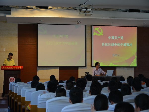 在素拓二楼科报厅邀请了马克思主义学院郭昌文教授为2015级新生做“中国共产党是抗日战争的中流砥柱”主题讲座。讲座由2015级新生辅导员沈庆斌老师主持。