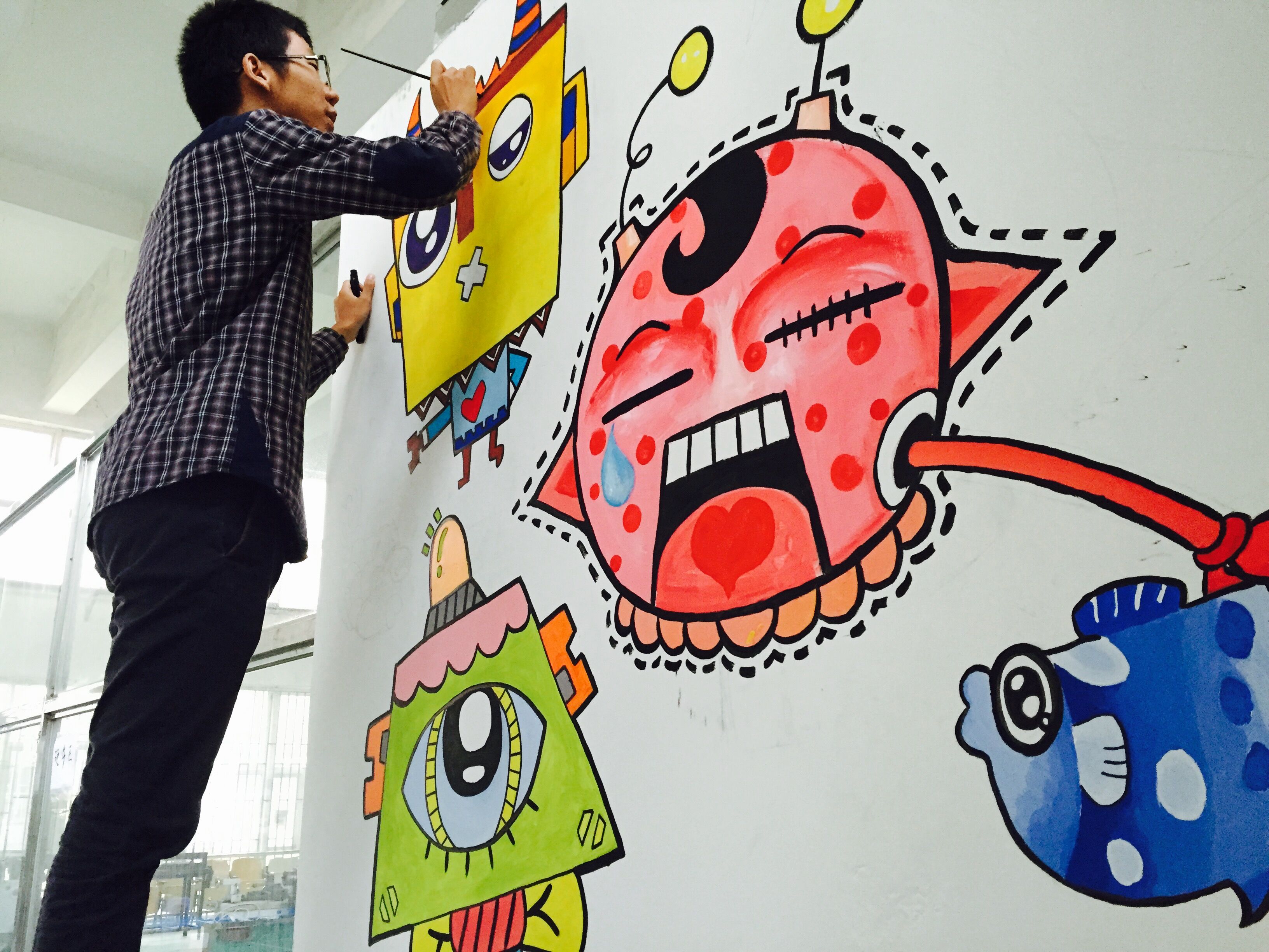 多彩九月,福大电气宣传部应校机器人协会的邀请,承担了校机器人协会实验室的所有彩绘工作。从2015年9月17日到2015年9月24日,为期一周的彩绘工程终于落下帷幕。原本略显沉寂的实验室也因此增添了一抹生动与俏皮。