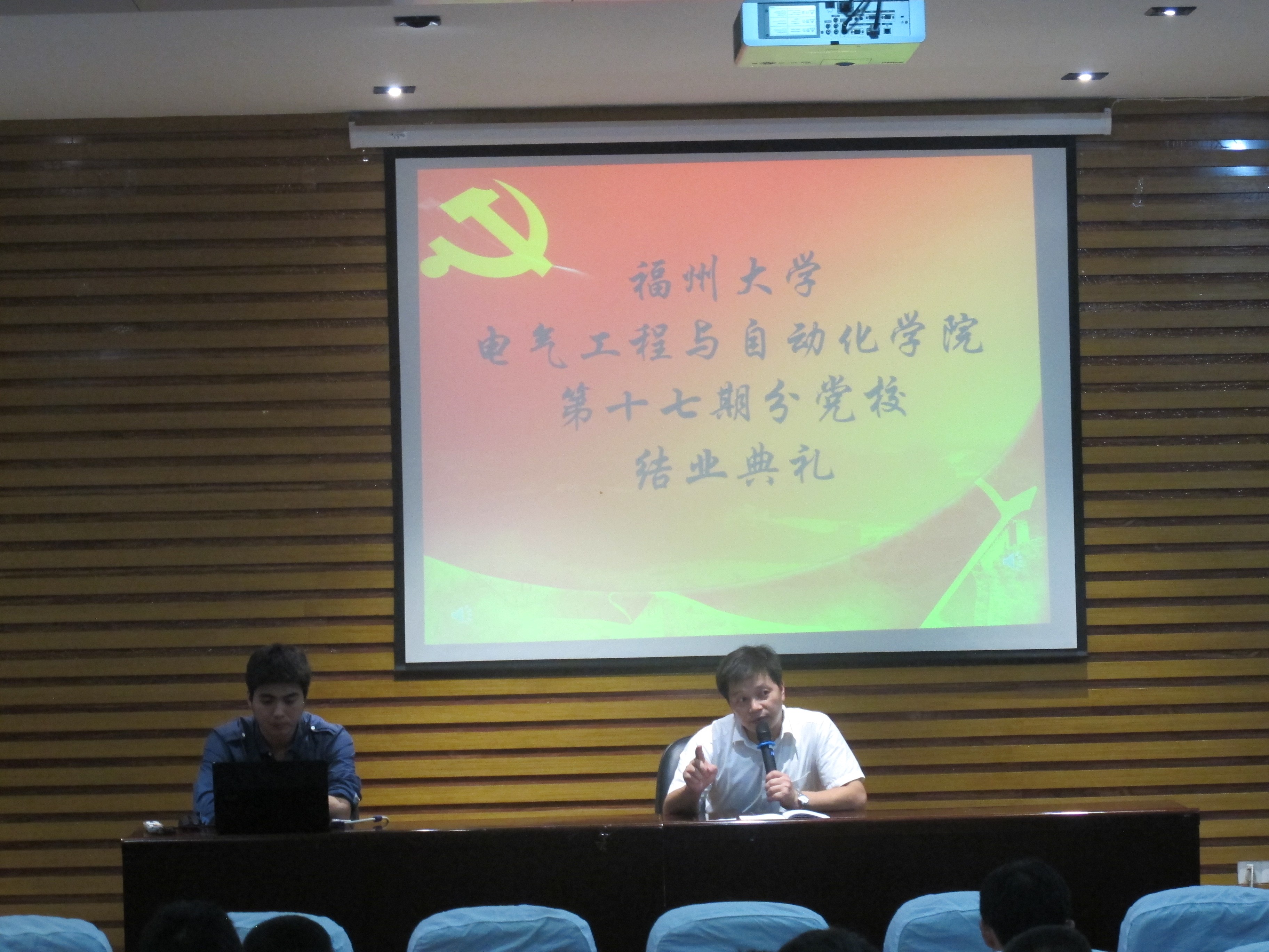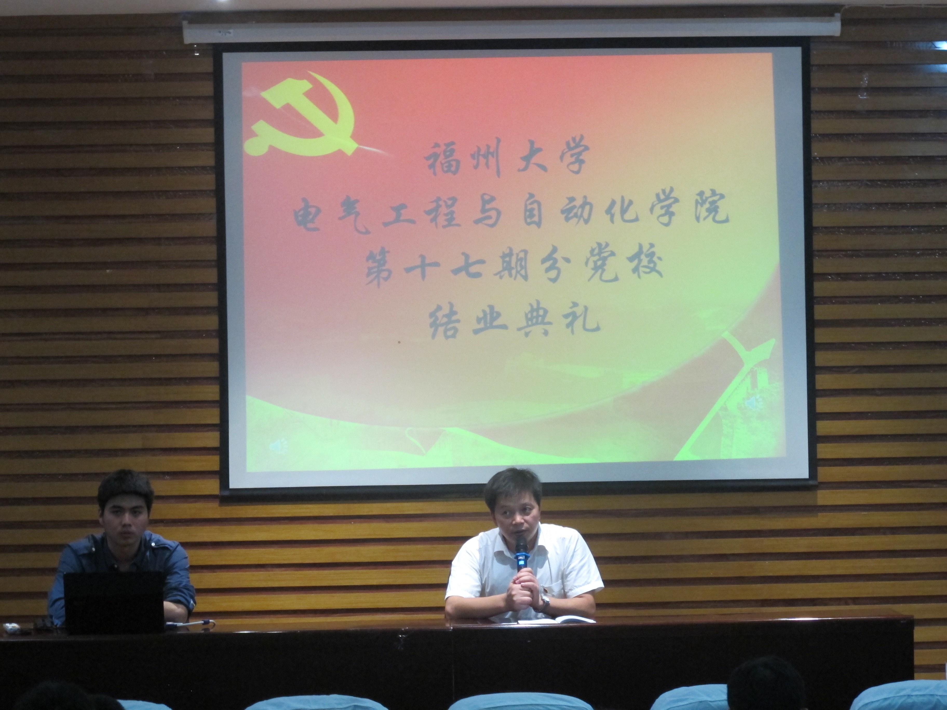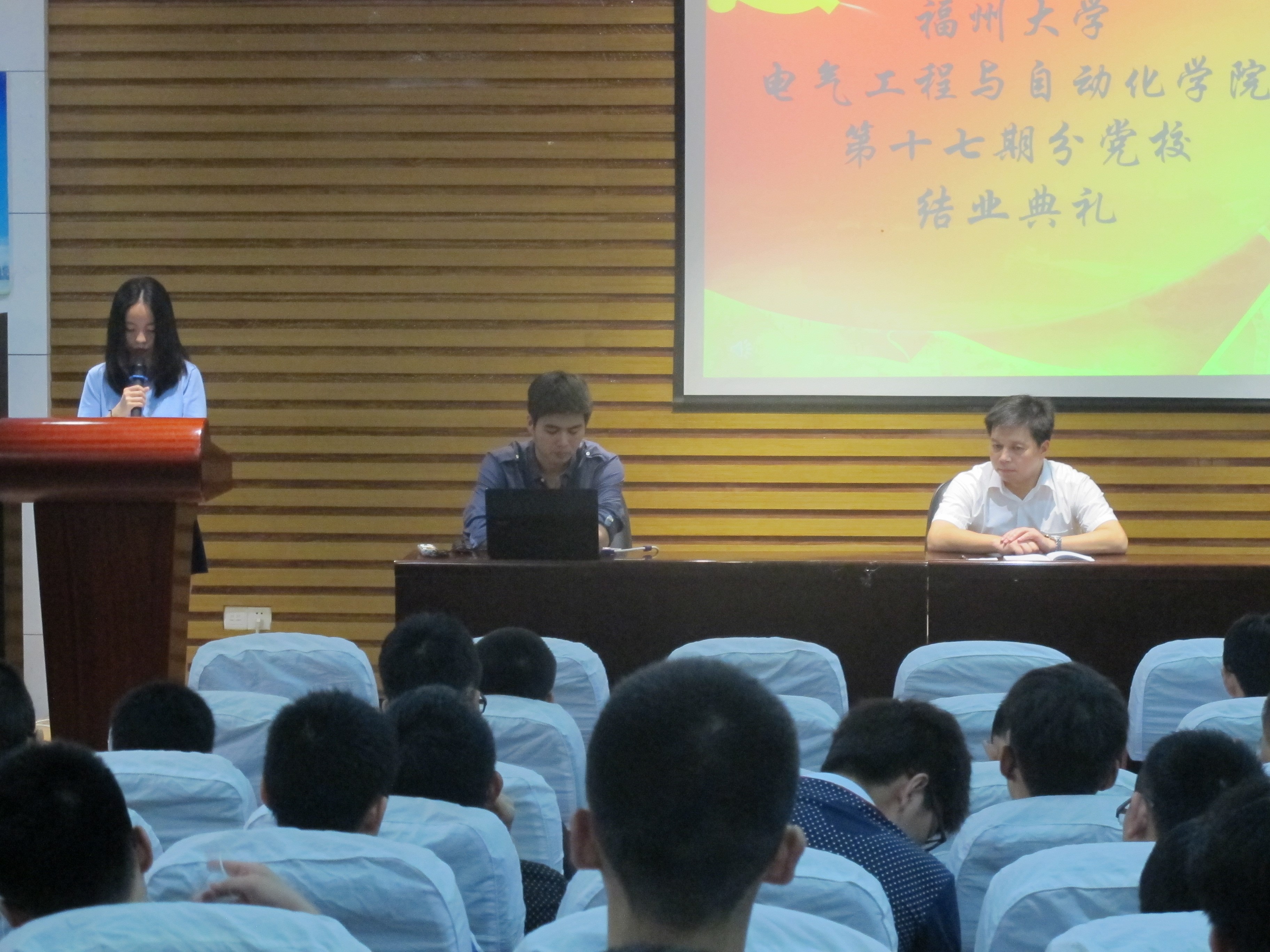 在全体起立奏唱国歌后,由主持人刘同民同学介绍了本期分党校的开展情况:第十七期分党校在3月25日正式开班,分党校期间邀请了柯江峰、陈智勇、何希耕等四位老师做了精彩的报告,开展了“如何端正入党动机”专题小组讨论;同时还组织学员前往福建省博物馆参观学习的社会实践活动,受到了学院各级领导的关注及广大师生的好评。报名参加本期分党校的学习的学员共有97名。最终通过考核顺利毕业95名。在结业的学员中,经过评比,共评选出27位优秀学员。