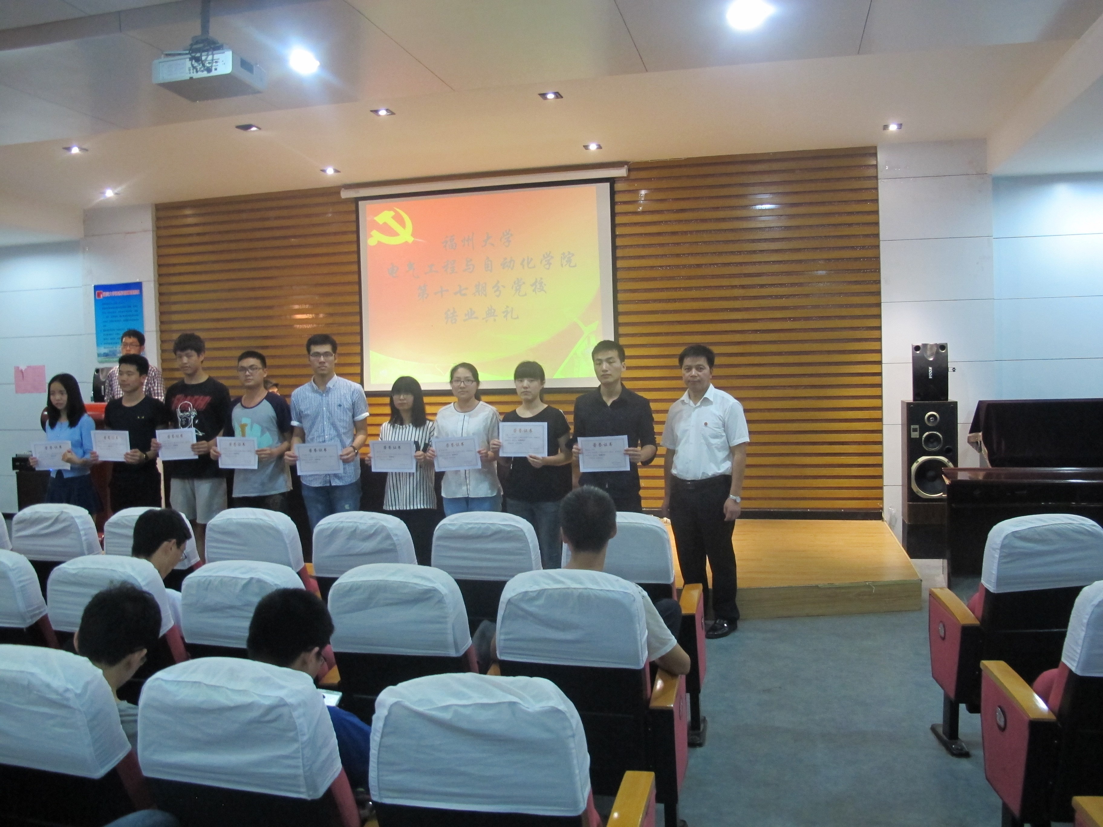 最后由主持人刘同民同学公布了本期分党校的27名优秀学员名单,并请黄国辉老师颁发奖状,合影留念。