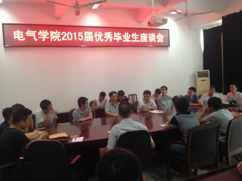 2015届优秀毕业生座谈会在新楚楼南212会议室召开。院党委黄国辉副书记,薛毓强副院长,院团委书记张志雄老师,院团委副书记沈庆斌老师出席了座谈会。