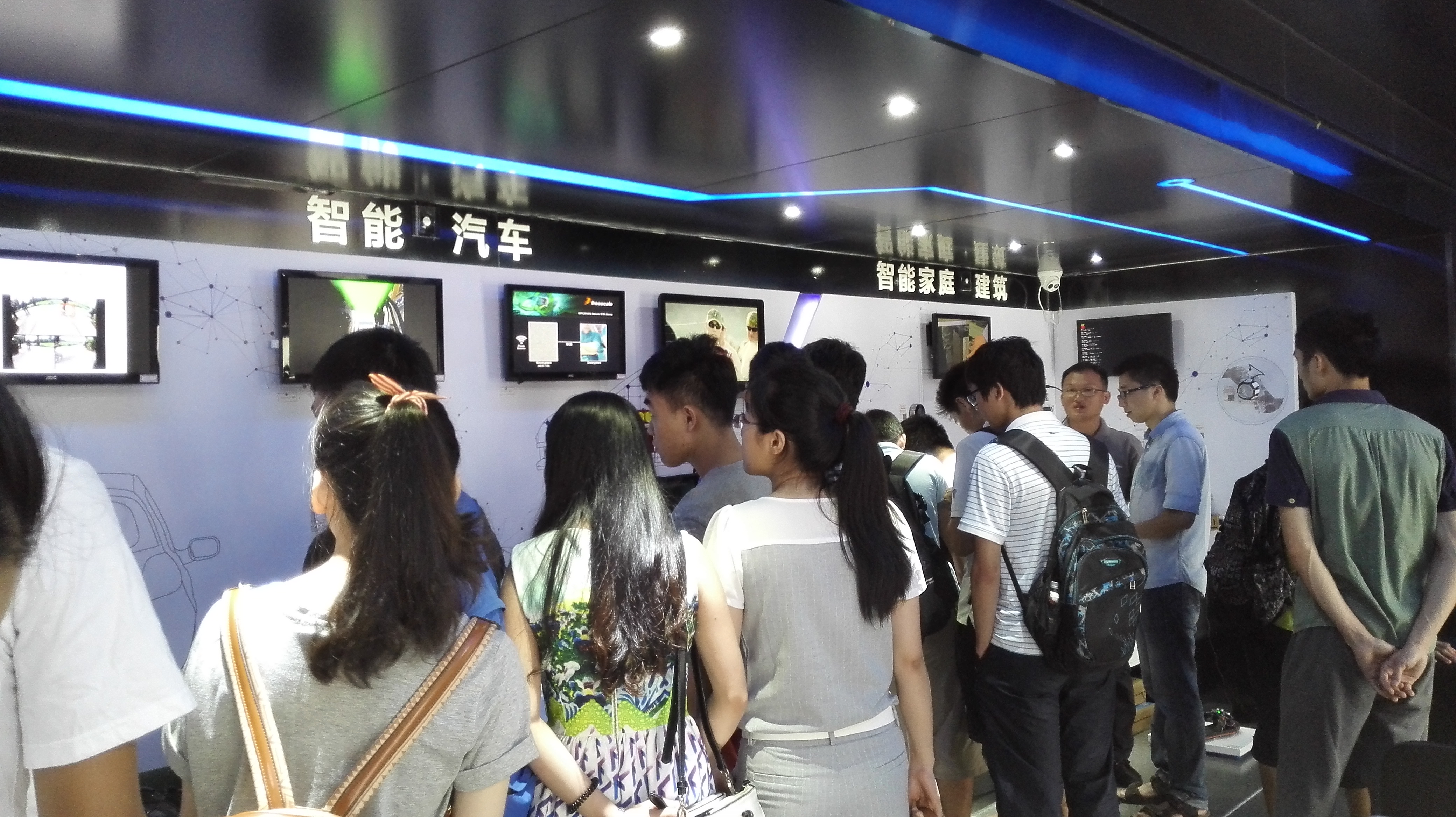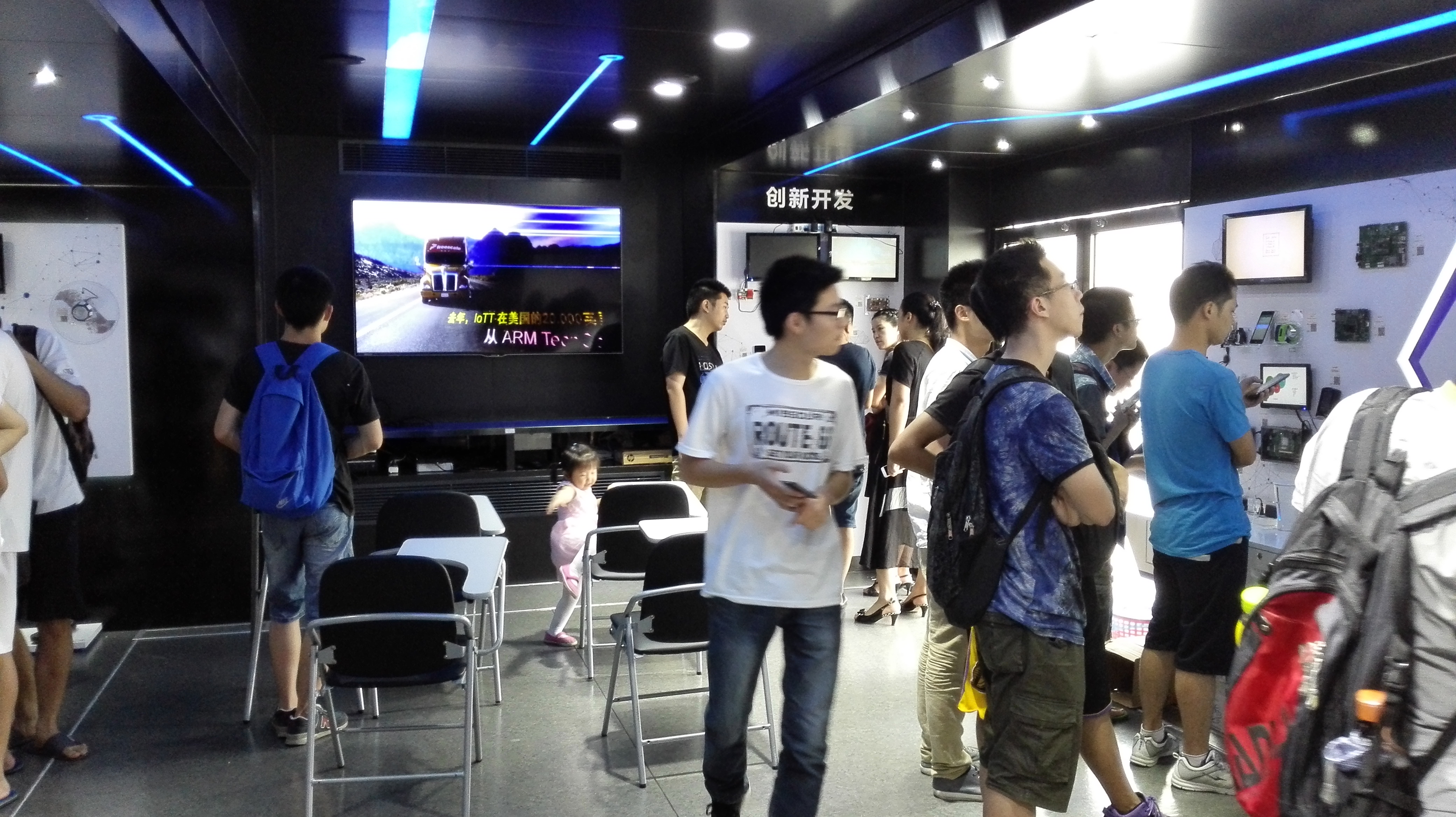 是“Internet of Tomorrow巡展——驶向智能未来”(以下简称IoTT)大篷车科技创新之旅校园行的重要一站,一辆车头长7.8米、车身长13米的厢式货车摇身一变,变成了富有科技馆和时尚感、面积达160平方米的科技展示平台。巡展针对目前物联网领域的热门应用,通过近100个相关产品的演示,启发同学们的创新思想,深入体验物联网平台的创新应用。