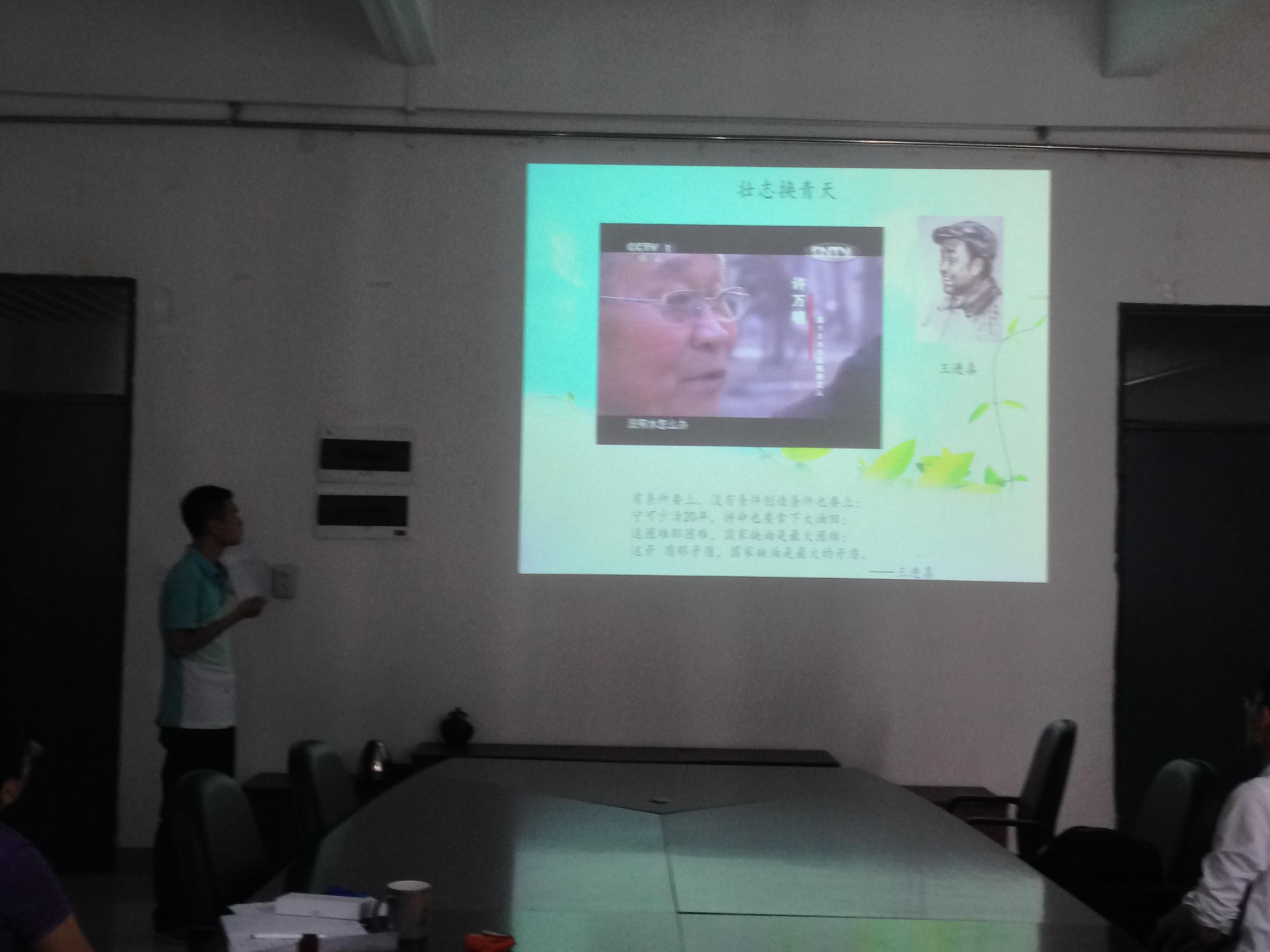 首先由雷永贵同志主讲,其主题是“党员的自我教育”。旁征博引,引经据典,从春秋时期的孔子到新中国领袖毛泽东,从一个个的历史名人及优秀共产党员出发,告诉我们自我教育的重要性及如何做好自我教育,尤其是要敢于批评和自我批评。最后希望各党员能够不断自我教育,不断提高,不断进步。接着由陈德灿同志给我们带来了《信仰》一课,期间播放了精彩视频片段,一个个优秀党员的光荣事迹,王进喜,孔繁森,钱学森,任长霞等等,无不显示了他们的崇高信仰和为国为民的坚定信念!让在座党员同志为之动容,给党员们一次精神上的洗礼!最后许老师对本次党课进行了点评和总结,要求每一个党员要坚定共产主义信仰,在平时学习和生活中要起带头作用,树立好榜样。