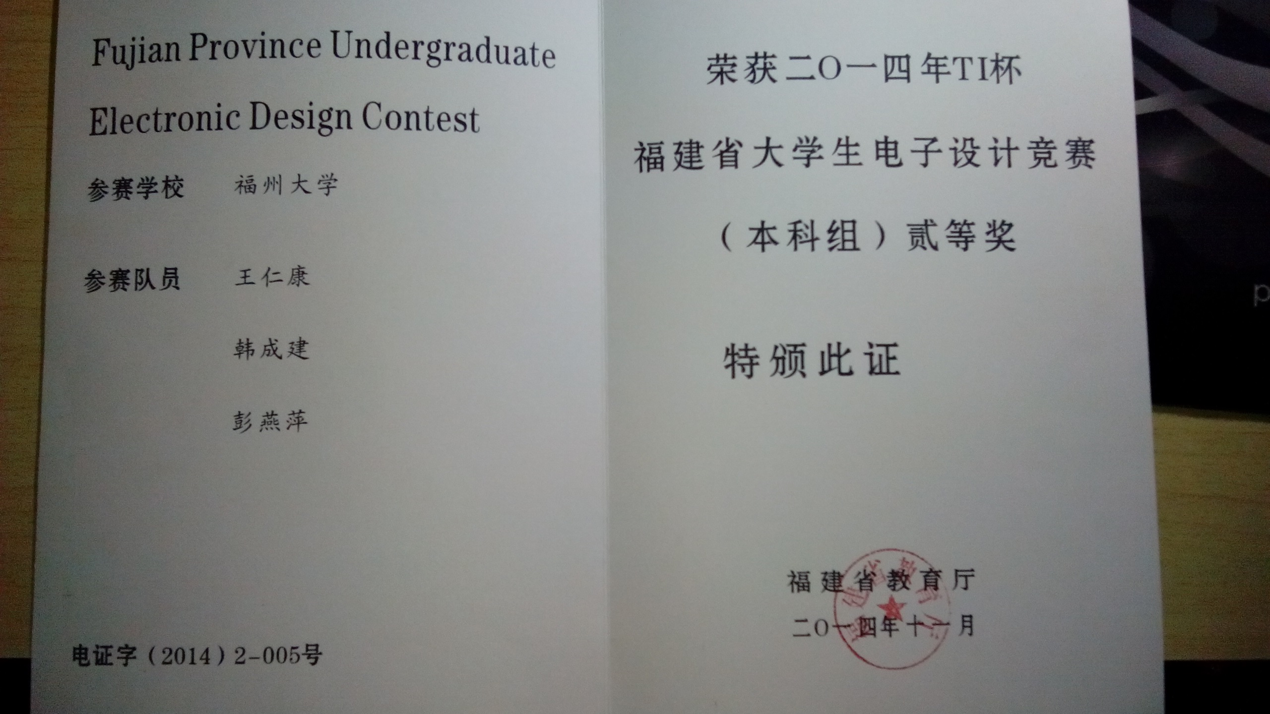 13级吴姝婷、连训祥、林颖锐同学获得本科组一等奖,王仁康、韩成建、彭燕萍同学获得本科组二等奖,朱泓晖、庄一展等15名同学均获得本科组成功参赛奖,让我们向获奖的同学表示热烈的祝贺!