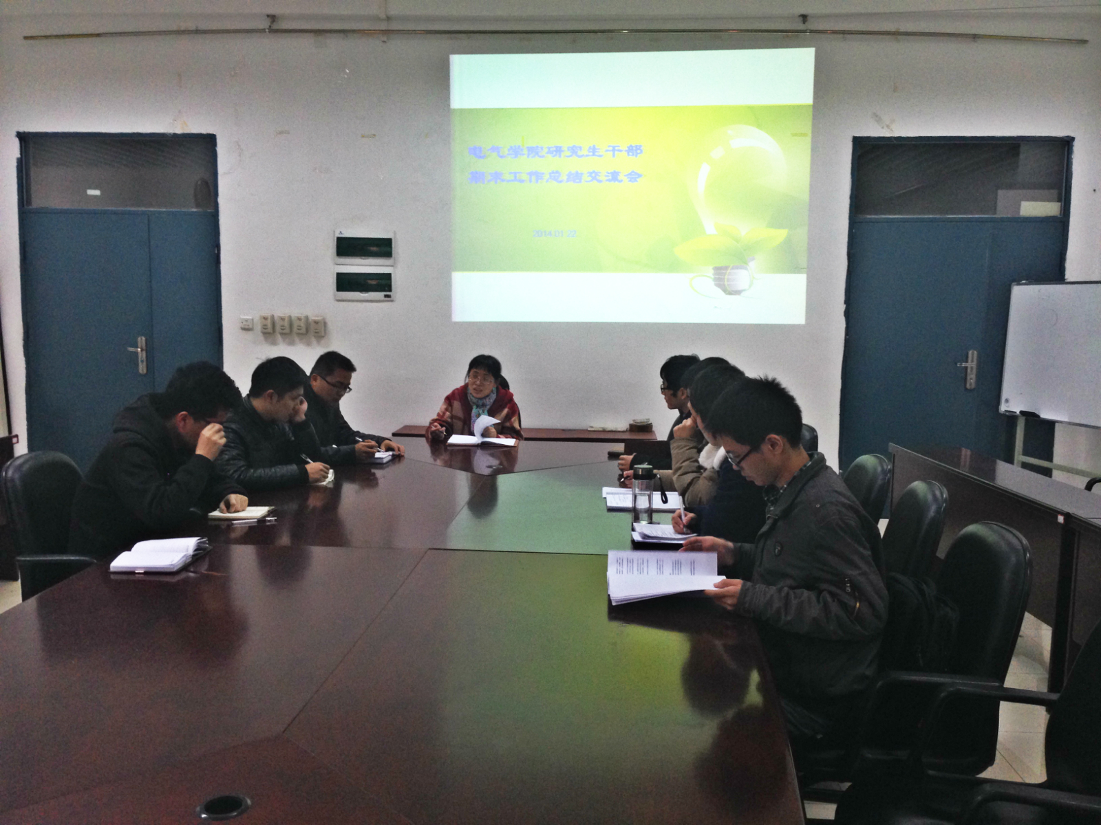 2015年1月22日下午2:30,在新楚楼院会议室召开了研究生干部期末工作总结交流会,辅导员许海燕老师和研会主要干部出席了本次会议。本次会议主要内容有:总结本学期学院研会各部门的工作,并讨论下个学期的工作计划。