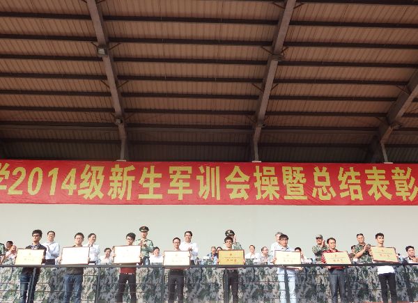 于10月26日在第一田径场举行了2014级新生会操暨表彰大会,学校各领导、教官以及新生们都展现出了对此次的大会的热情与关注。