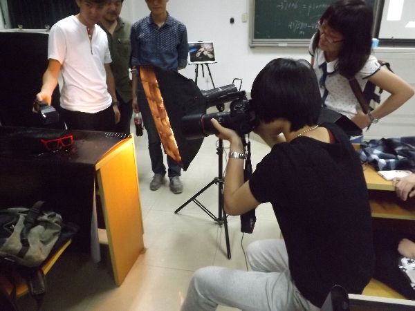 经历丰富的主讲人首先向同学们介绍了他的十年闯荡之路以及他走上商业摄影这条道路的原因,然后又分析了摄影行业现状,让同学们收获颇多。随后的现场示范环节更加精彩,主讲人用高超的技术将几种常见的摄影美图还原在同学们眼前,让同学们赞叹不已。而最令人惊喜的是同学们还可以亲身体验,专业的设备、灯光和工作人员的协助着实让同学过了一把“专业瘾”。在体验中,同学们试着将一副寻常的眼镜拍成一件赏心悦目的艺术品时,委实备感自豪,而当把杯中水溅起的姿态定格成一种优美的画面时,甚至顿生感动。成功时掌声一片,失手时亦是欢声满堂,在这样轻松愉快的氛围中,活动不知不觉接近了尾声。