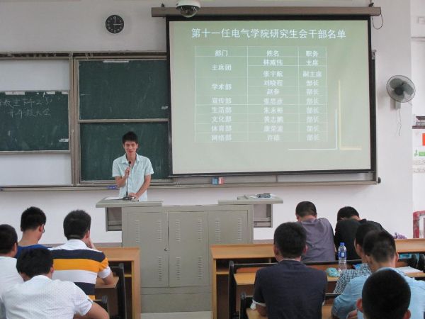 许海燕老师以一个幽默的开场白宣布了本届大会的开始,瞬间点燃了大家的热情。接着上一届研会主席王竹勤同学做了2013-2014学年的研会工作汇报,短短十几张PPT,工作成果却颇丰,干出的成绩斐然。在研会干部们的带头下,篮球赛、学术科技月等各项集体活动都顺利落实。紧接着,新任主席林威伟同学和研会干部班子向大家做了自我介绍以及对未来研会工作的展望,新人的亮相引起了同学们的一片鼓掌,这掌声表示了对他们的肯定和支持。最后,许海燕老师做了会议总结,对过去一年我们取得的成绩给予了肯定,对我们的不足也做了批评指示,与此同时许老师也提出了对学生干部在新学年工作的要求以及对全体研究生学习、工作、生活的期望。