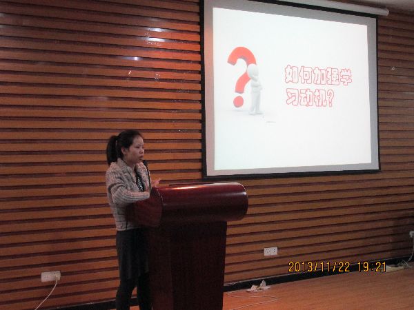 讲坛以一个名为“算一算”的小游戏开始,让同学们明白学习的代价是巨大的,是不可忽略的;接着,许世梅老师通过问题“大学学习和高中学习有什么不一样?”让同学们明白大学的学习态度应该是“我要学”,而不是“要我学”;最后许世梅老师从“发挥内部学习动机”、“树立学习目标”等七个方面重点讲述了如何加强学习动机,并在这个环节中通过提问和游戏的方式与同学们互动,同学们也积极参与,并多次报以热烈的掌声。